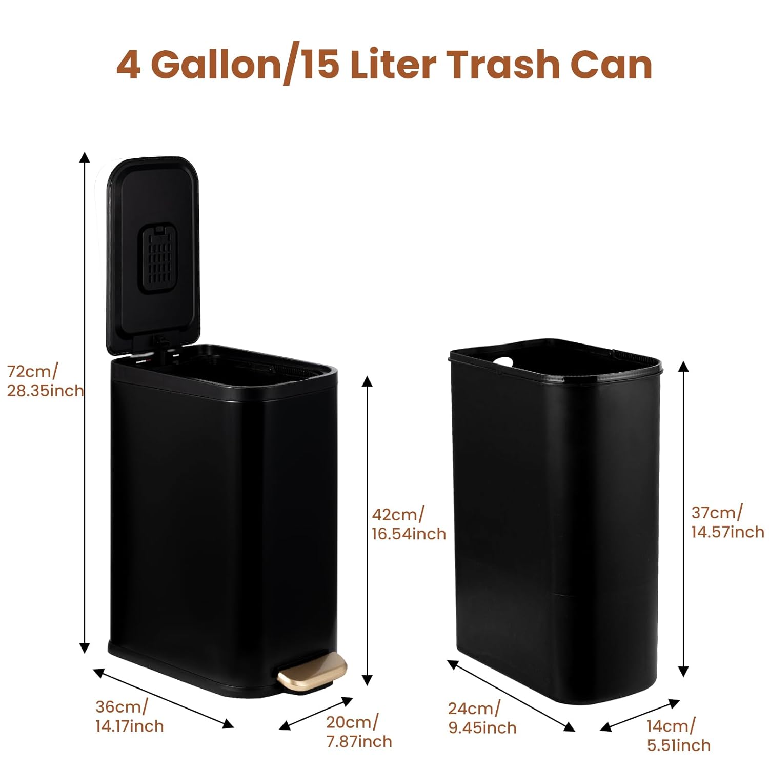 - Size & Capacity:Measures 12.4" x 7.68" x 16.93" ;4 gallon/15 liter