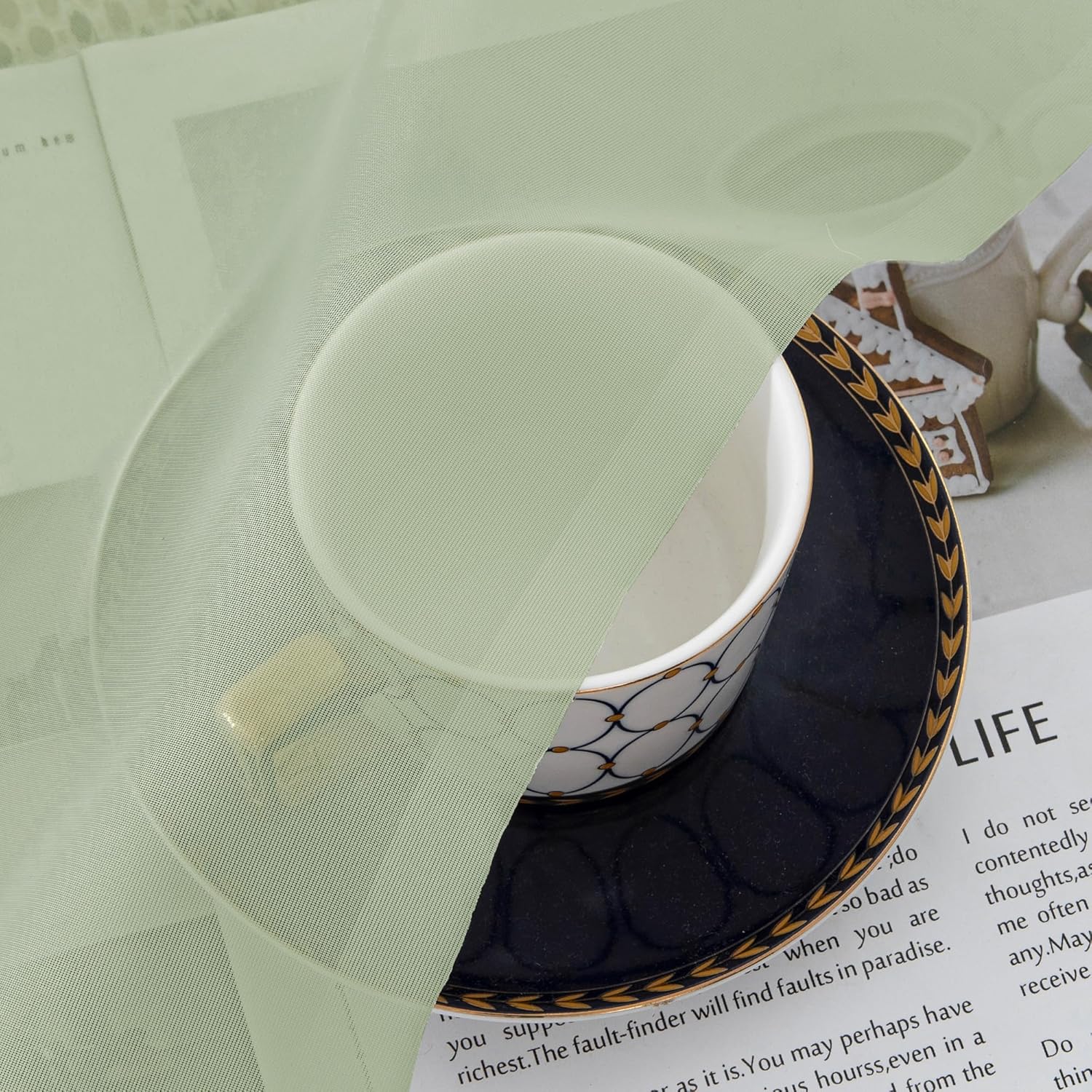 Chyhomenyc Light Green Sheer Valances for Windows 2 Pack, Small Window Curtains for Living Room Bathroom Cafe Laundry Basement, Modern Top Dual Rod Pocket Voile Curtain, 42W x 14L inches