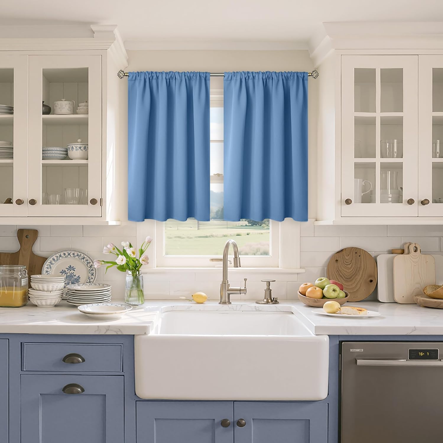 BGment Denim Blue Blackout Curtains 36 Inches Long for Kitchen Cafe Window - Short Length Thermal Insulated Drapes Darkening for Bathroom RV Window Privacy, 42 x 36 Inch, 2 Panels