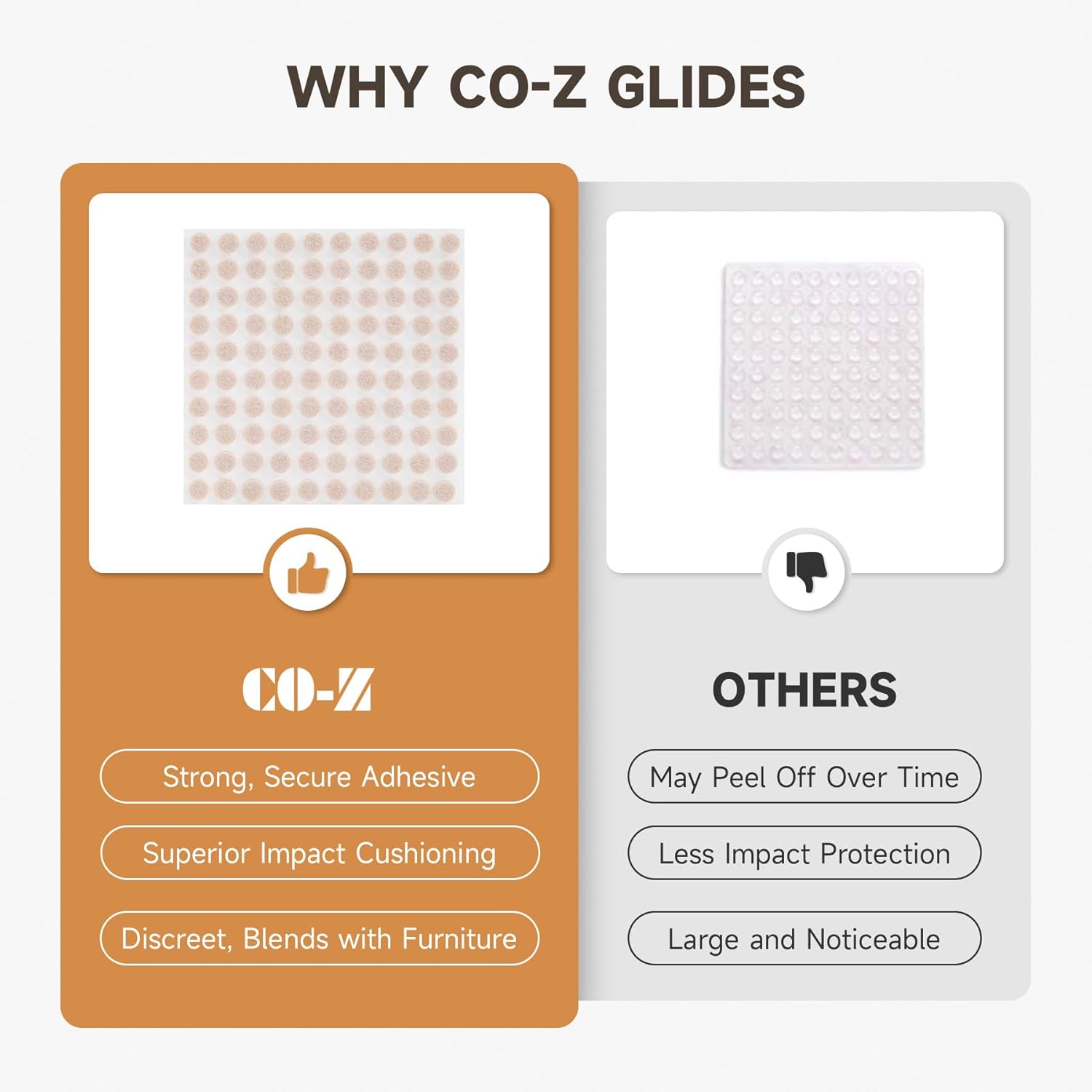 - Effortless Setup: Simply peel off the adhesive backing, press firmly onto any clean surface, and you're done! No tools are needed—just quick and easy protection for your furniture