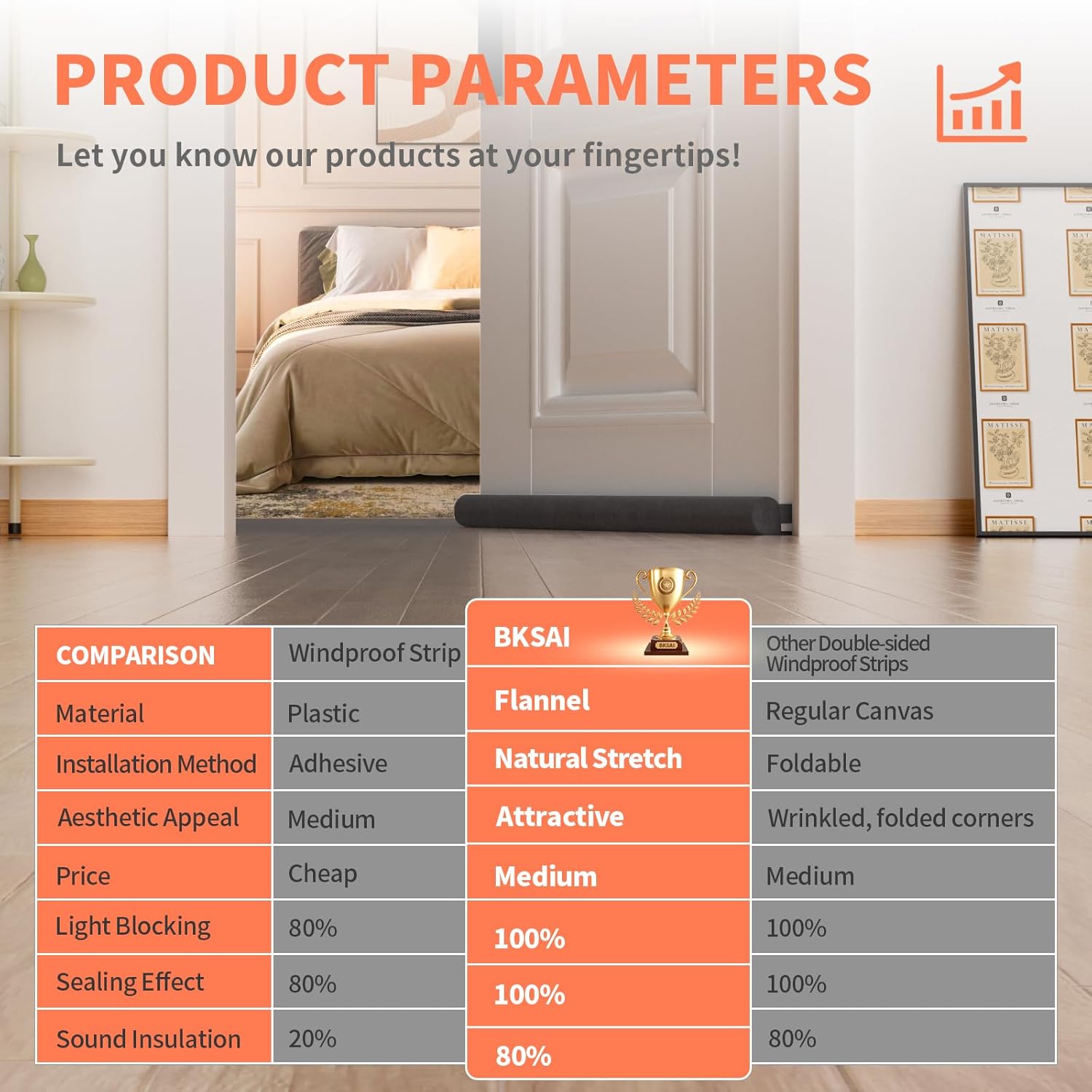 - 5-in-1 Under Door Draft Stopper for Ultimate Protection: Block light, cold drafts, heat loss, noise reduction, and 1nsect-proof door gap. maintain indoor temperature, silence, and pest-free comfort in all seasons.