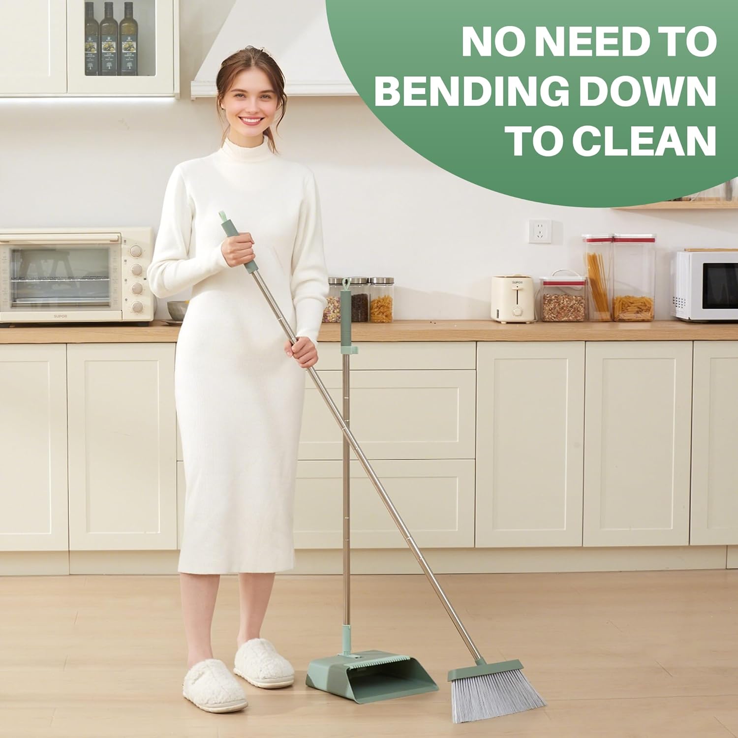 JOYMOOP Dark Teal Green Broom and Dustpan Set, Upright Angle with Built-in Comb Teeth, Ideal for Home, Office, Hardwood, Pet Hair