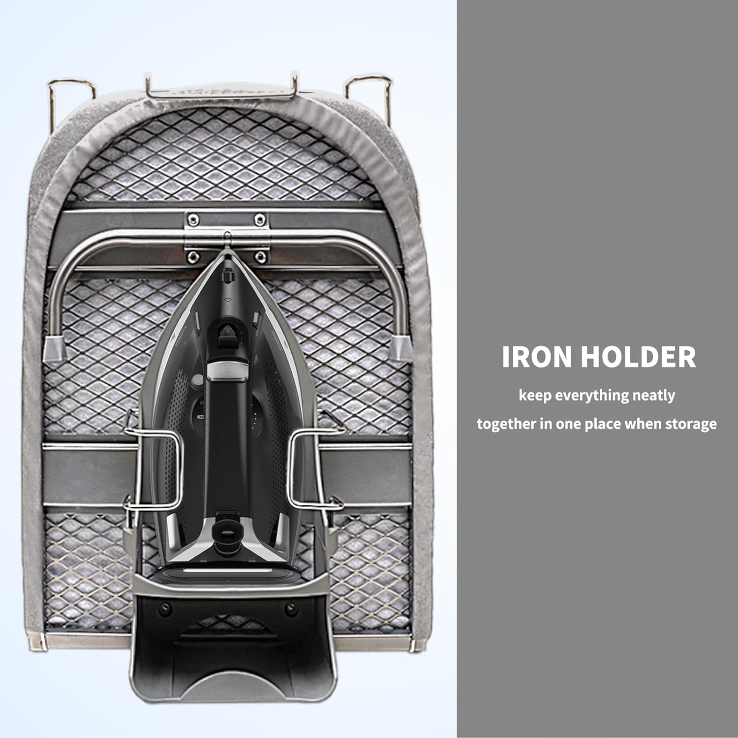 - Built-in Iron Rest & Holder: Conveniently store your iron safely and securely while ironing