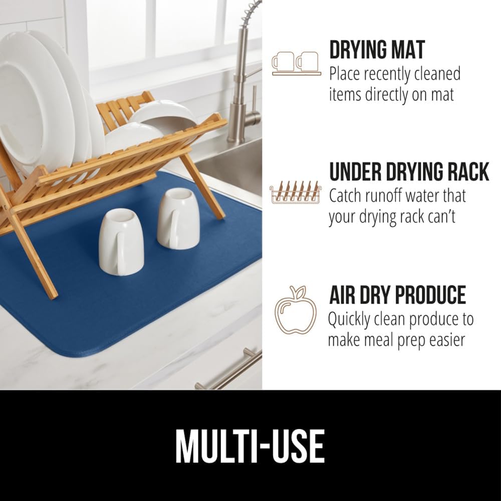 GORILLA GRIP Ultra Water Absorbent Microfiber Dish Drying Mat, Quick Dry Thick Mesh, Slip Resistant Pad for Sink Dishes or Under Rack, Kitchen Counter Accessories, 16x18, Machine Wash, Blue