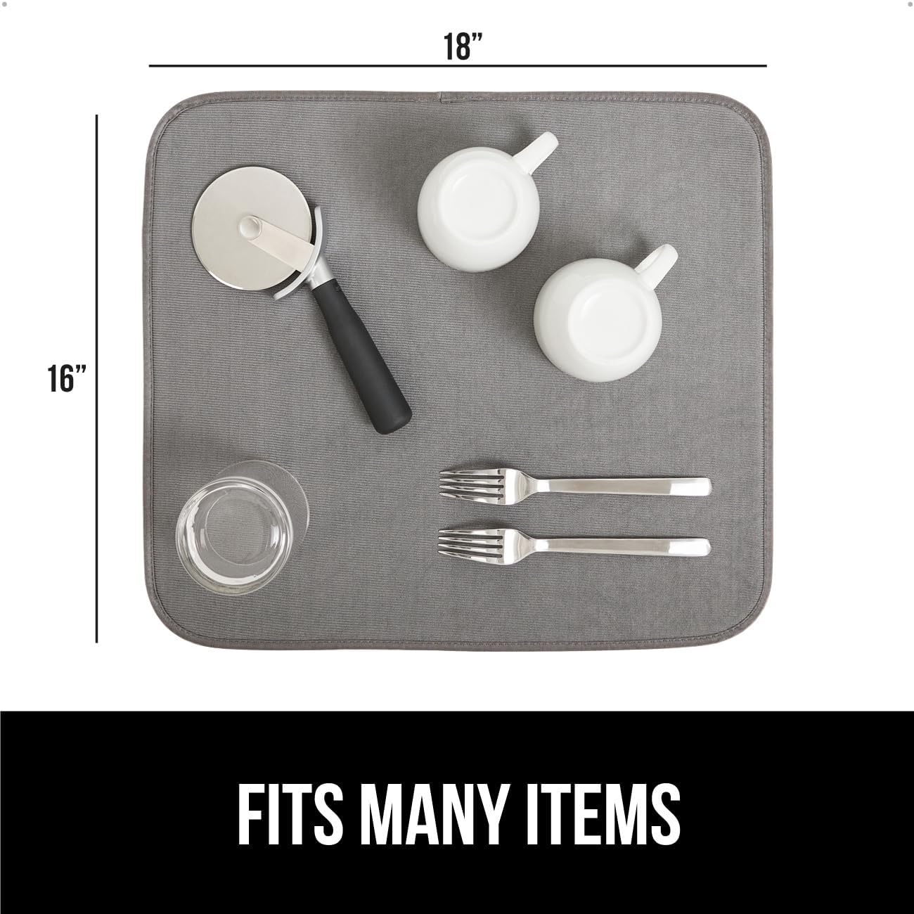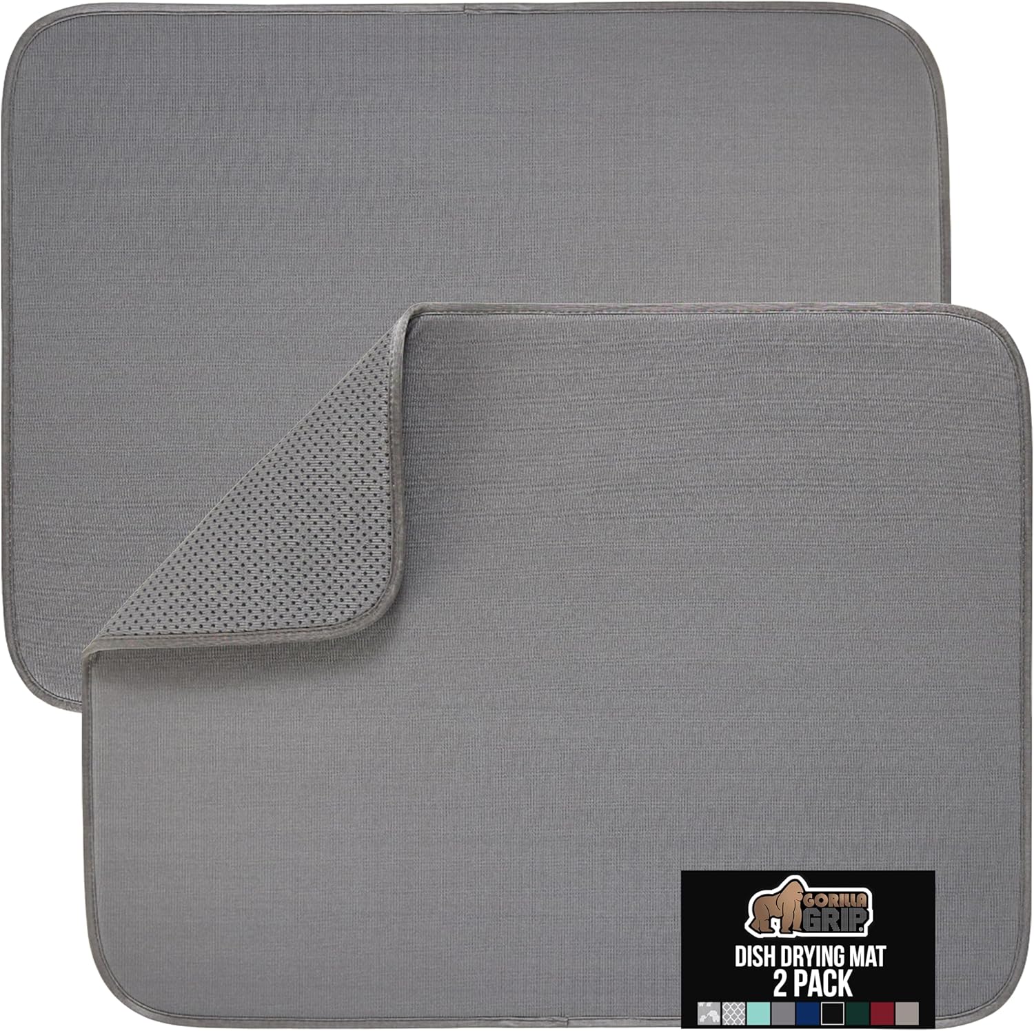 GORILLA GRIP Ultra Water Absorbent Microfiber Dish Drying Mat, Quick Dry Thick Mesh, Slip Resistant Pad for Sink Dishes or Under Rack, Kitchen Counter Accessories, 16x18, Machine Wash, 2 Pack Gray