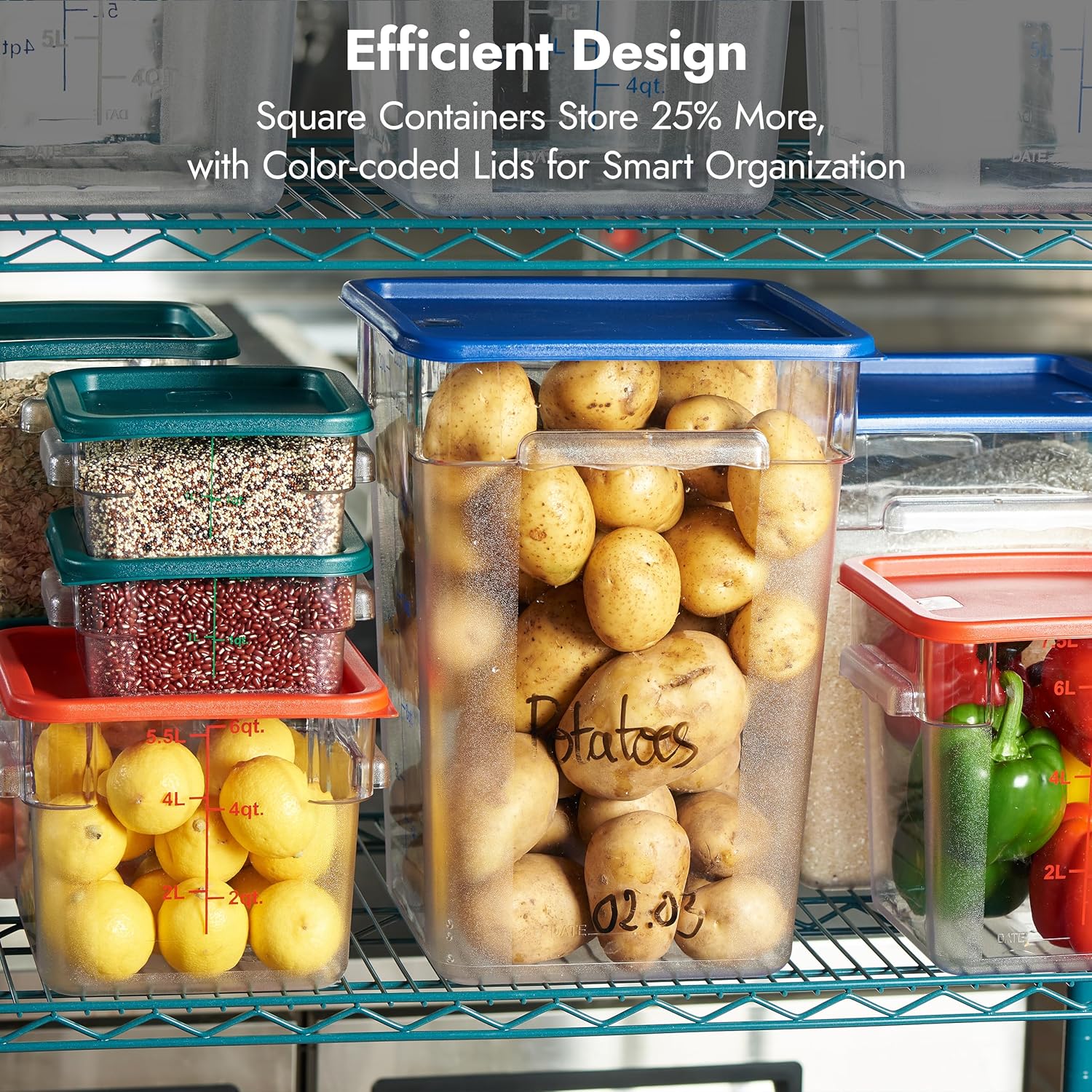 - Stackable Square Design with Easy-Read Graduations - The square profile saves up to 25% more space than round containers and stacks securely with built-in lugs. Bold green measurement markings in quarts and liters make it easy to portion and track inventory at a glance—ideal for both home kitchens and professional use.
