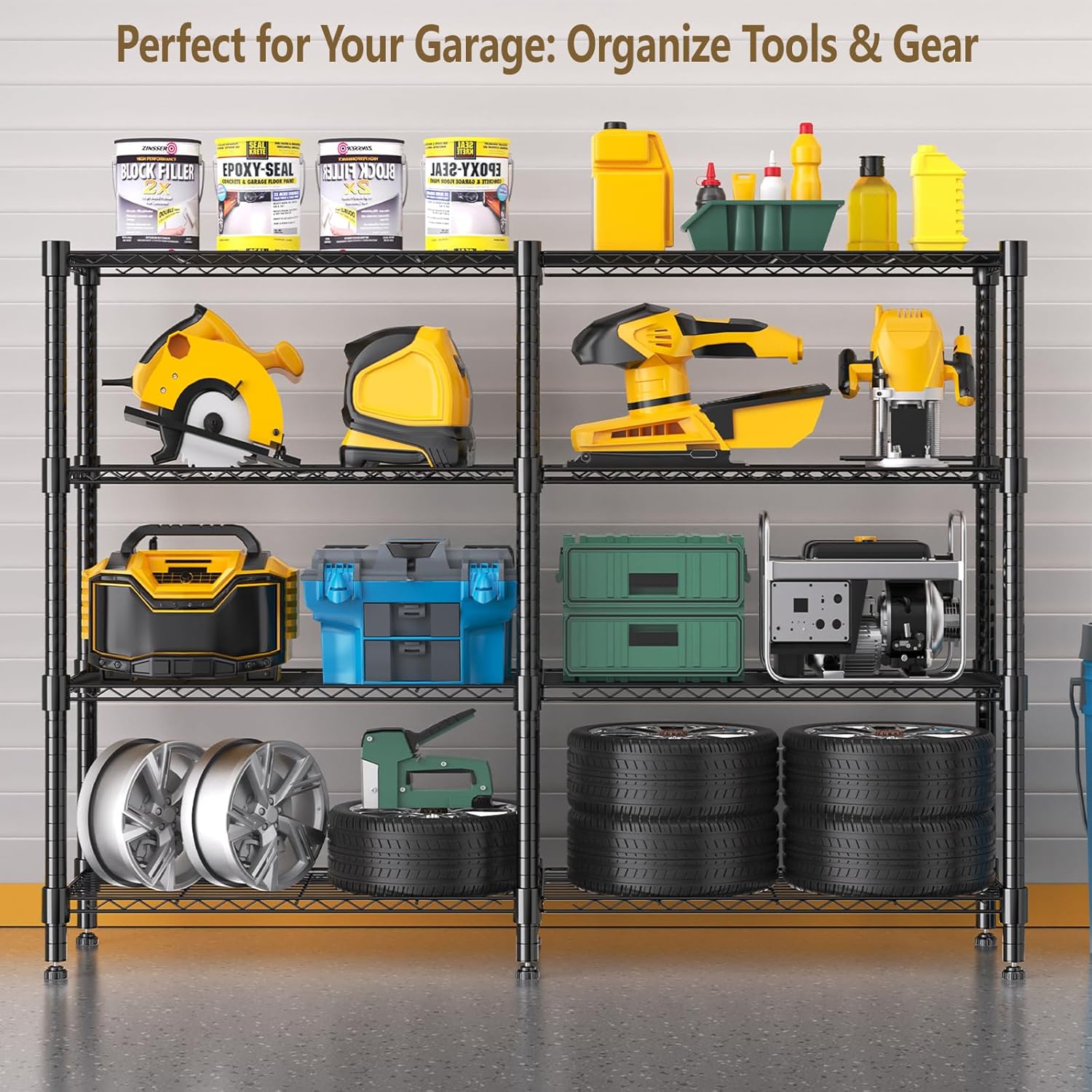 Himimi 4-Tier Heavy Duty Metal Storage Rack, 1200LBS Adjustable Wire Shelving for Storage, Standing Storage Shelf Units for Kitchen Garage Pantry Laundry, 60" W x 14" D x 60" H, Black