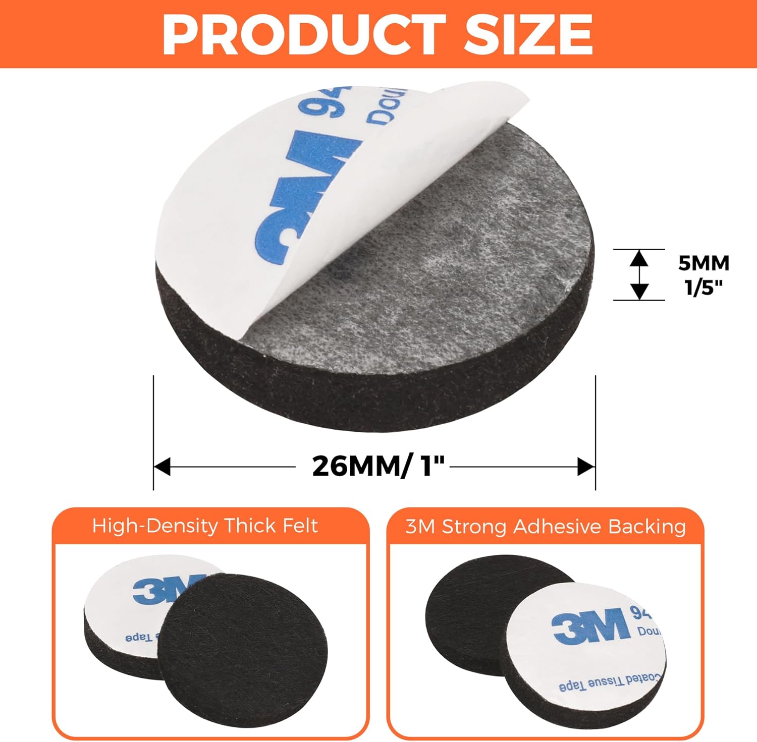 - HIGH QUALITY - This felt pads is made of high quality felt, the material is safe and not easy to fade and damage, 3M adhesive backing can provide a firm viscosity to meet your different fixed needs