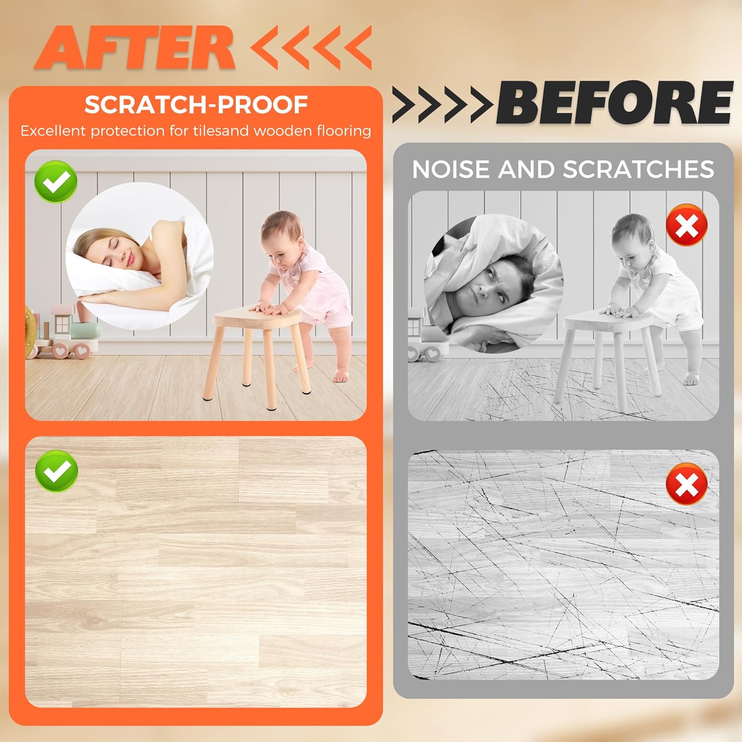 - WIDE APPLICATIONS - Suitable for tile, laminate, hardwood, carpet and any type of floor to prevent floor damage with furniture fixed. It also applies to any furniture and appliances, including chairs, sofas, cabinets, drawers, doors, laptops, keyboards, electronic devices, vases, etc