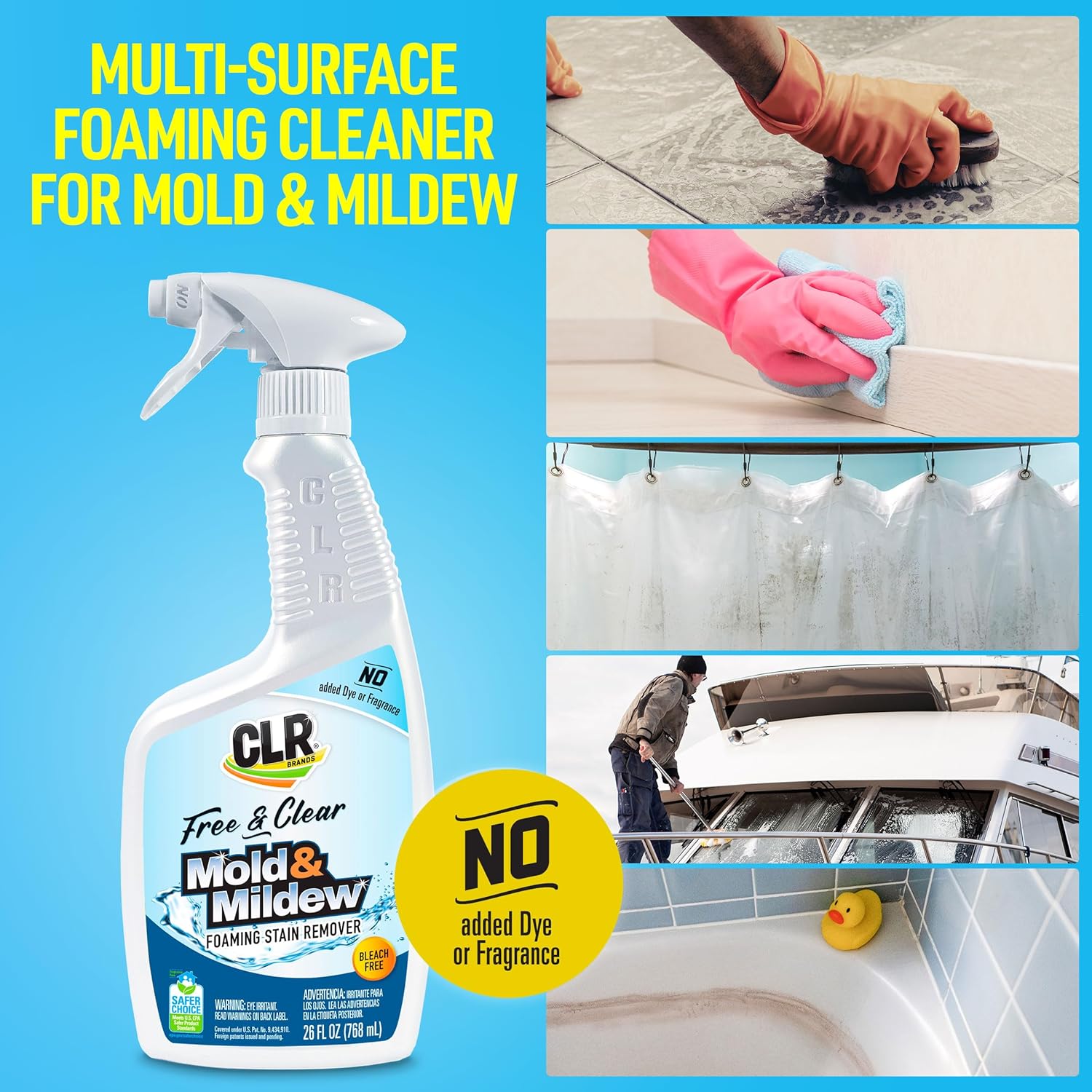 CLR Brands® Mold & Mildew Bleach-Free Free & Clear Stain Remover, No Dyes or Fragrances, 26 Oz Bottle (Pack of 1)
