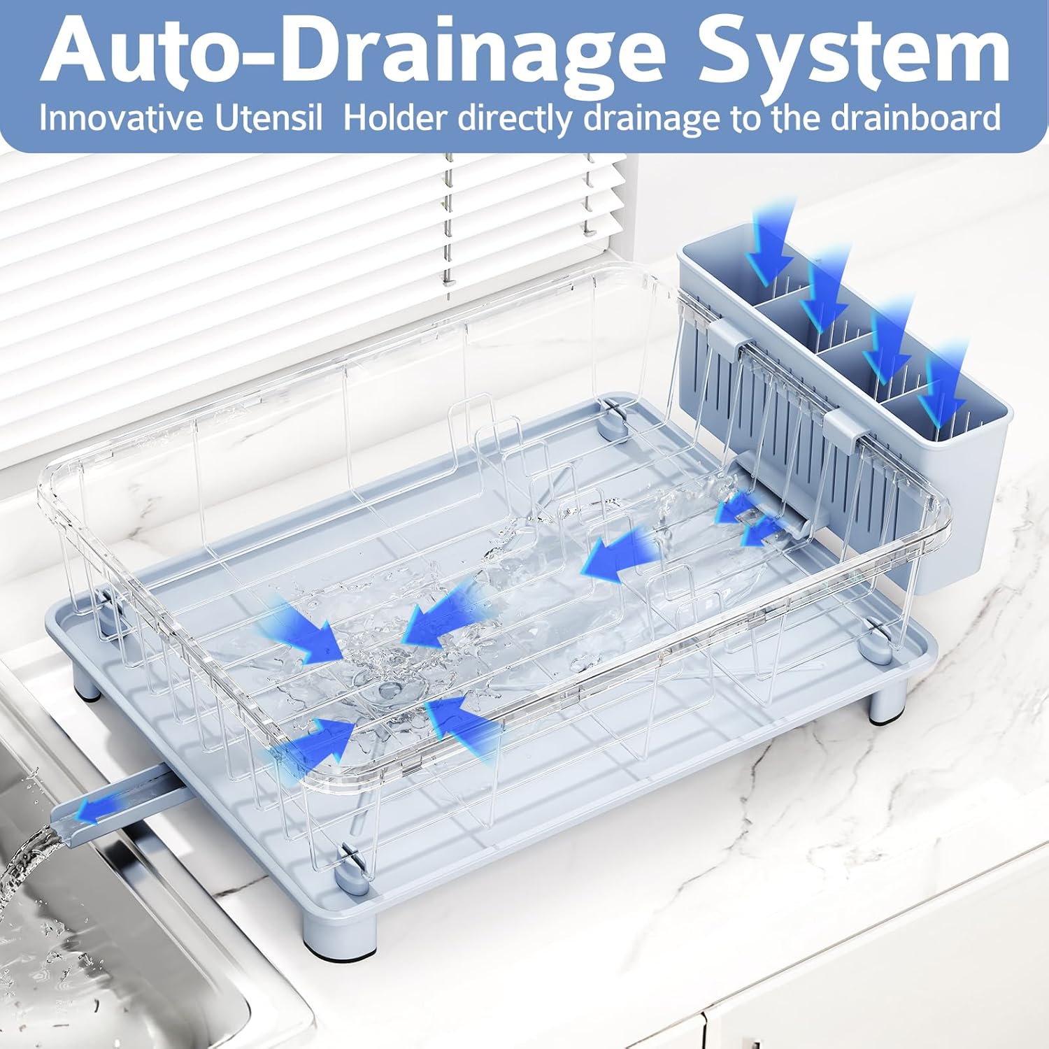 Blue Dish Drying Rack, Dish Rack,Space-Saving Dish Racks for Kitchen Counter with Utensil Holder,Gifts for Women Mothers Day, Kitchen Gadgets & Decor
