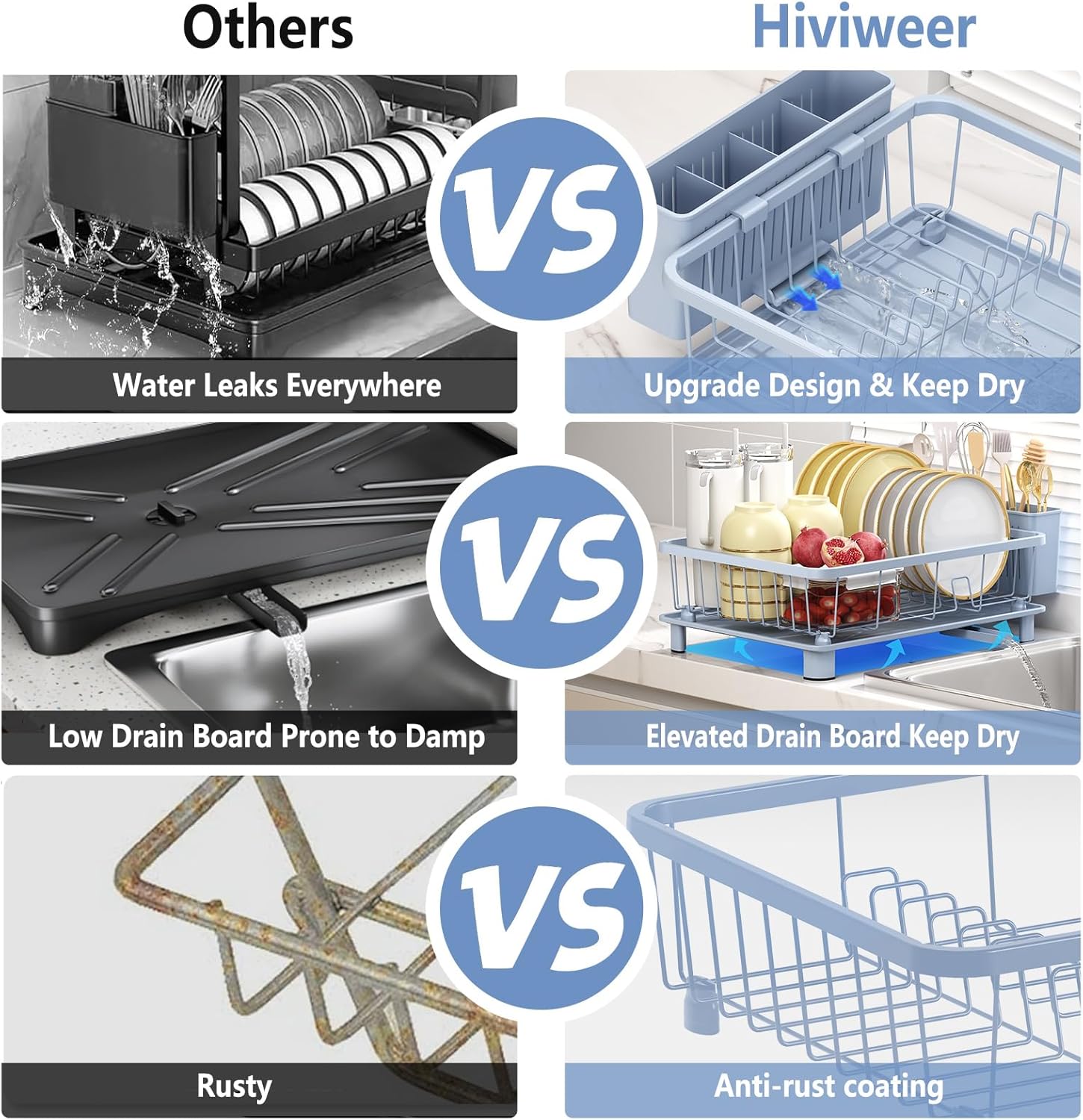 - 【EASY INSTALLATION】Hiviweer kitchen drying rack has a simple structure, no tools are needed during the installation process, my kids can do it easily. Not only does this dish rack have 4 PP plastic non-slip feet, but the draining board feet also come with 4 silicone feet to prevent slipping and make the whole dish rack more stable.