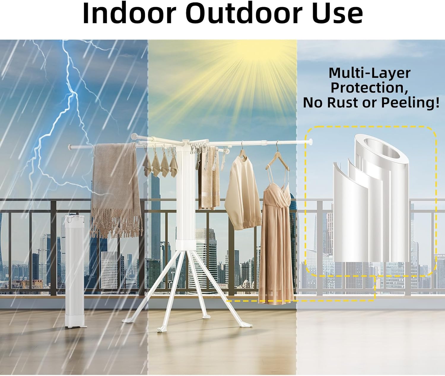 - 【Superior Quality & Stability】Constructed from durable, lightweight carbon steel, this clothes drying rack foldable supports up to 88 pounds with ease. Its reinforced base and four non-slip feet ensure steadfast stability. A robust five-layer anti-rust coating protects against water spots, promising a long-lasting performance even under frequent use