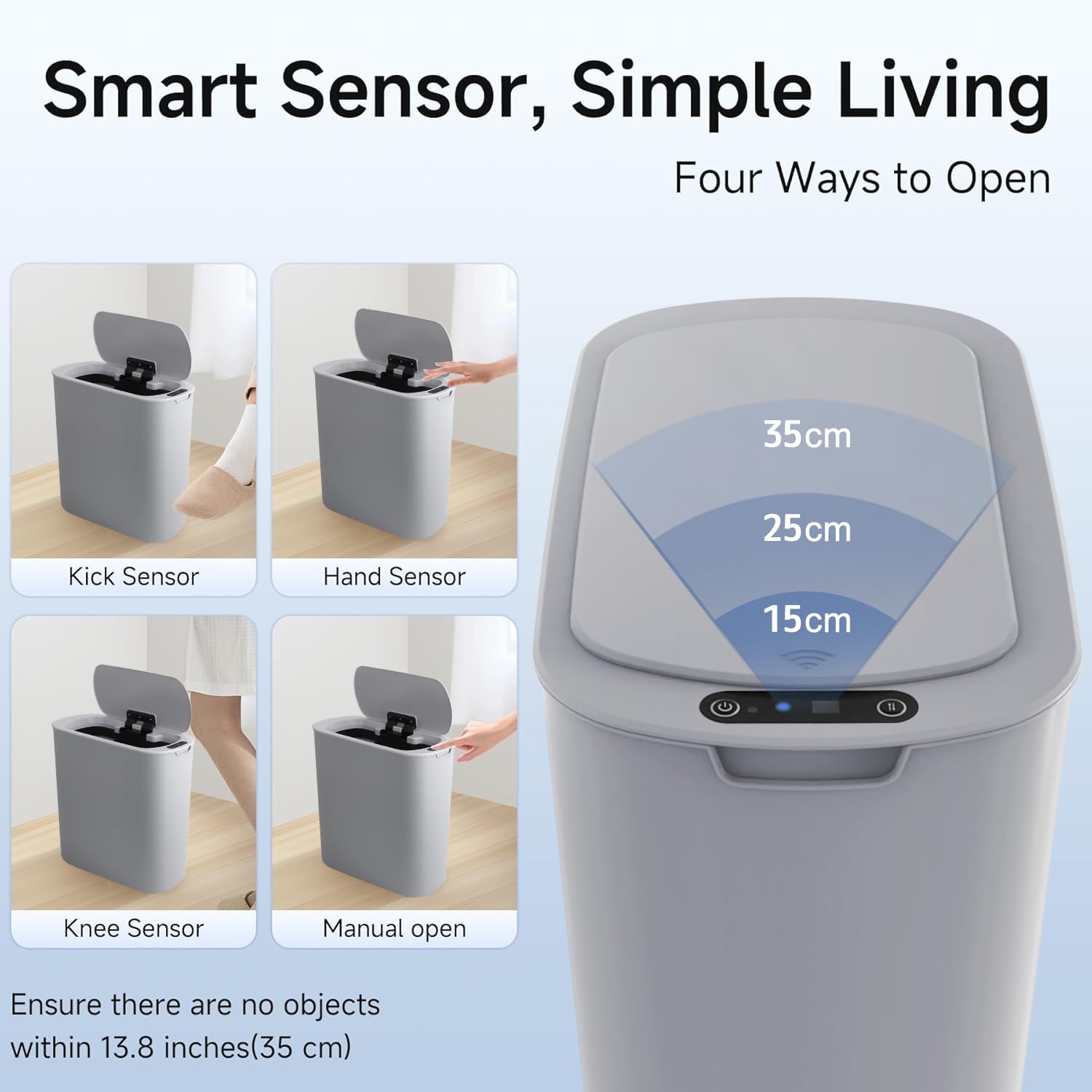 5 Gallon Motion Senor Bathroom Trash Can with Lid, Automatic Garbage Can Touchless, Smart Plastic Waste Basket for Narrow Spaces, Bathroom, Office, Bedroom, Living Room (Gray)