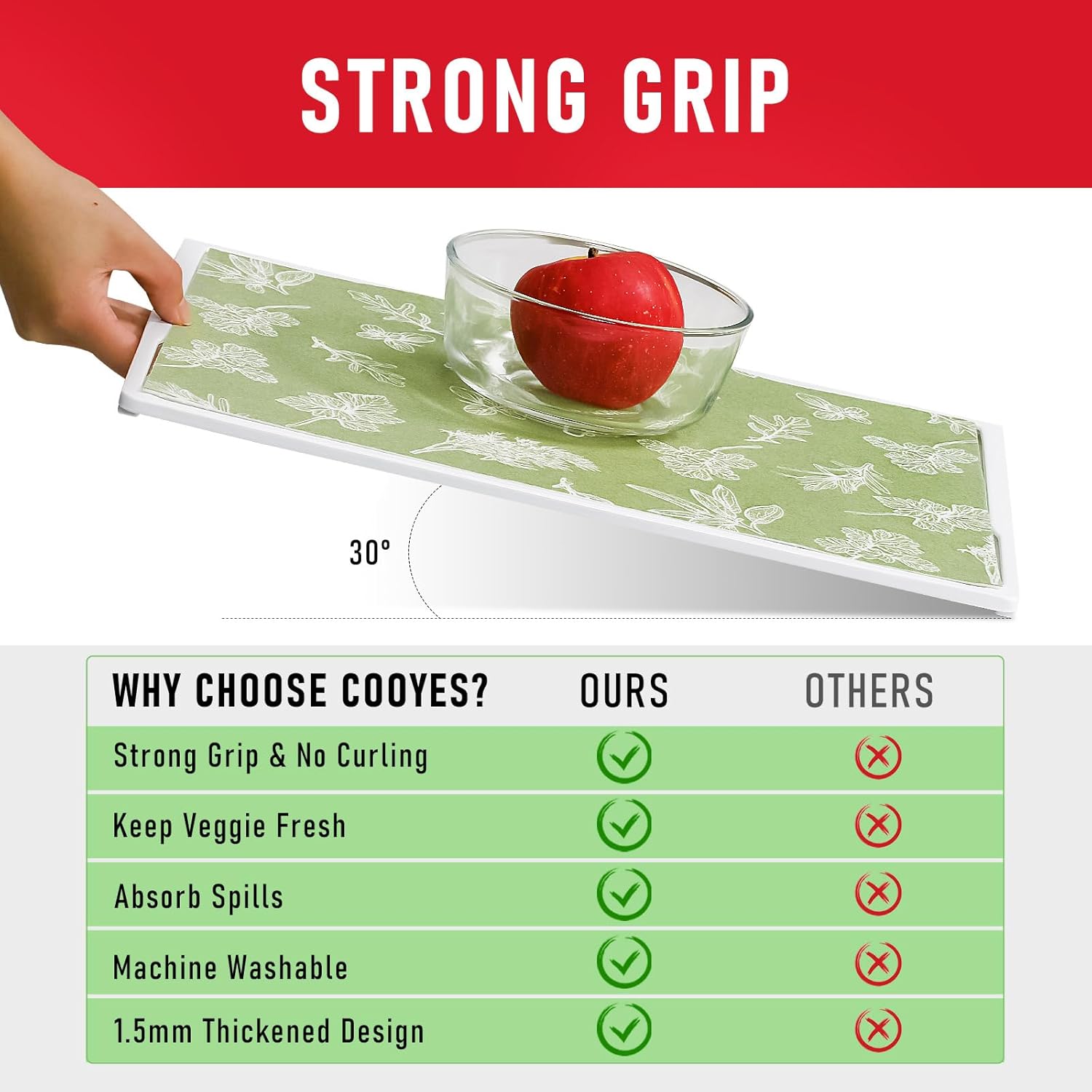 Cooyes Large Refrigerator Liners for Shelves, 12 Pack, 17.7" × 36", Fridge Drawer & Shelf Liners for Kitchen Cabinets Non-Adhesive, Breathable Cloth Material, Keep Produce Fresh Longer, Sage Green