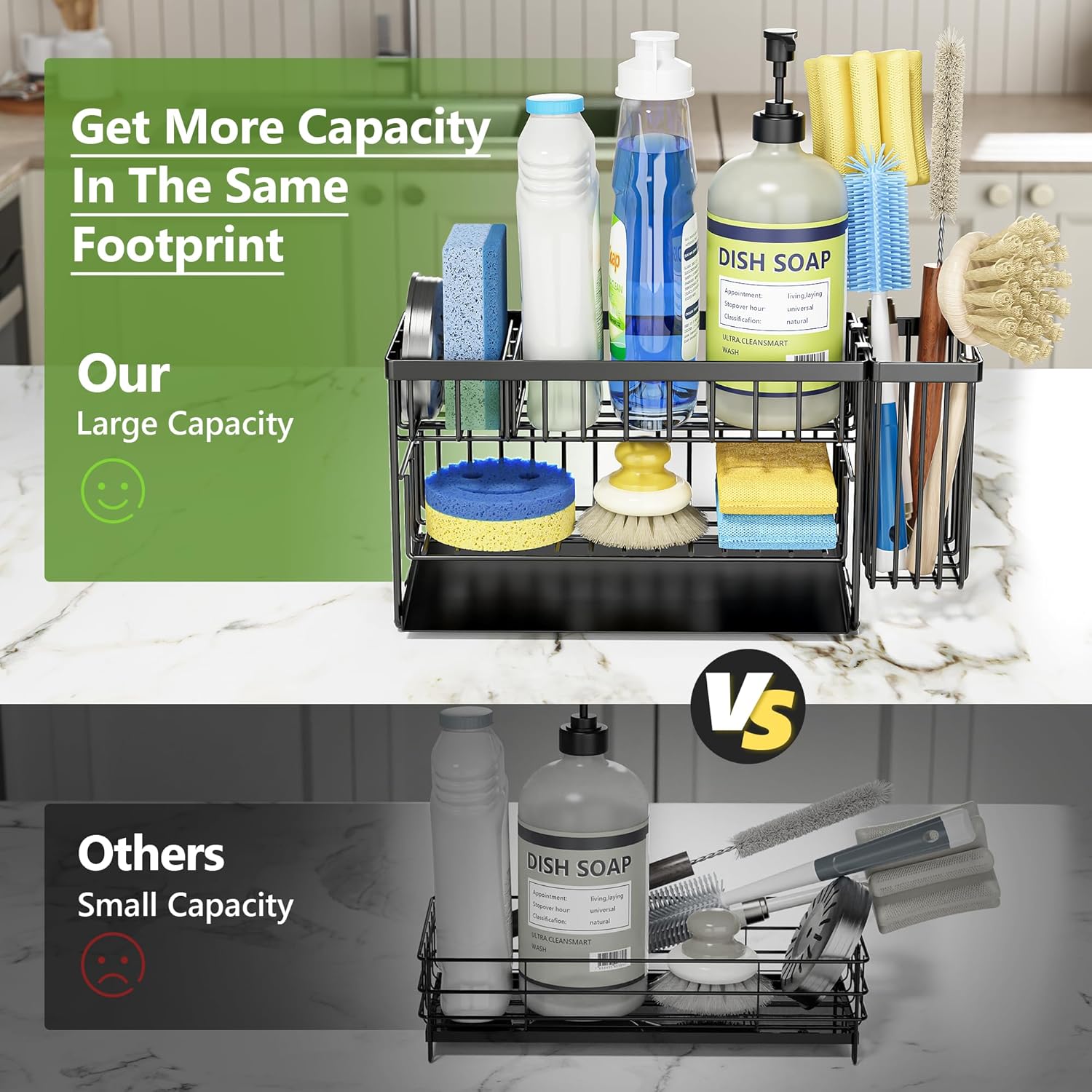 - 【Rustproof, Durable Stainless Steel】 Crafted from high-quality stainless steel with a rust-resistant black coating, this kitchen caddy is built to last. No bending, no rust—just long-lasting performance that looks sleek on any sink.