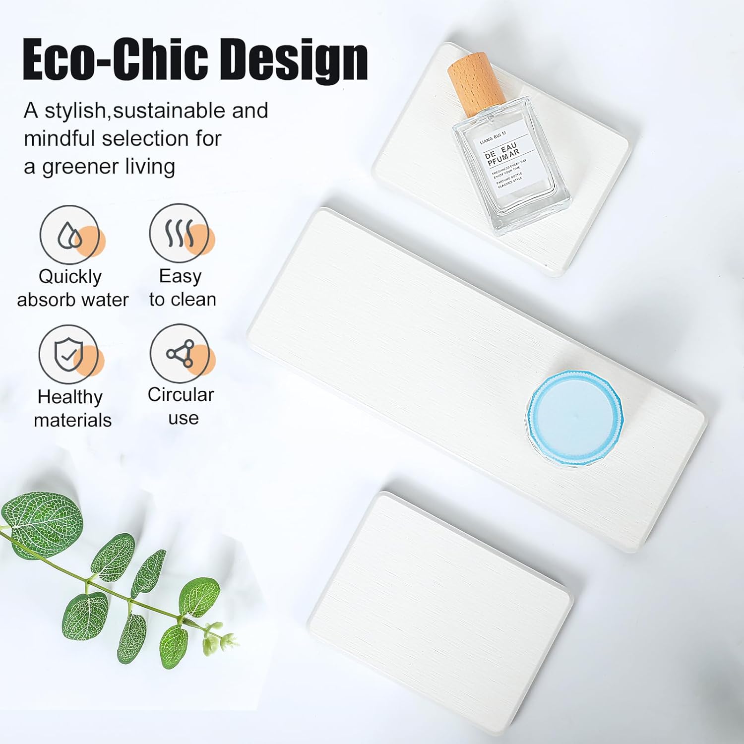 3PCS Stone Drying Tray, Water Absorbing Stone Tray for Sink, Stones Soap Trays, Fast Dry Diatomite Stones Mat,Used for Hand Soaps,Sponge,Toothbrush Holder in Bathroom Counter and Kitchen Sinks