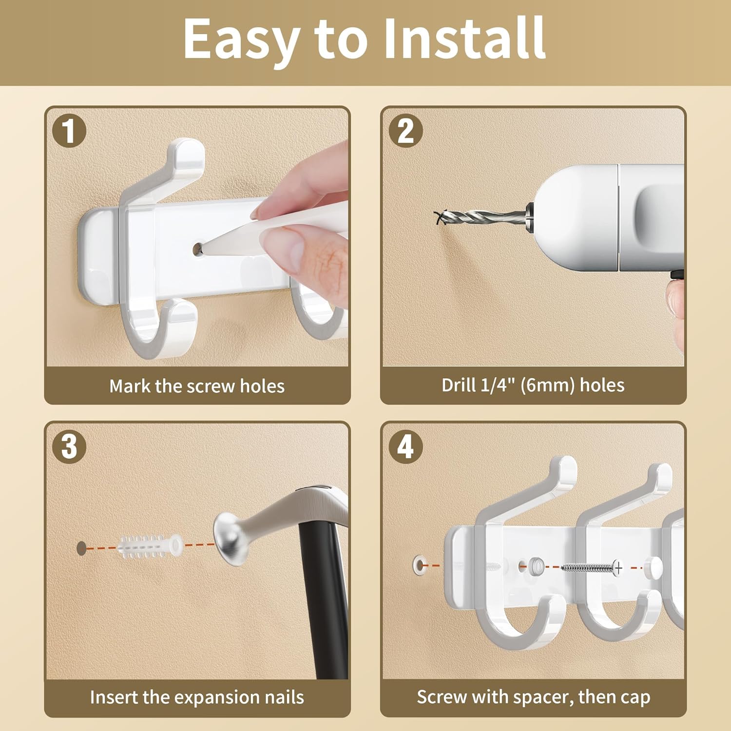 - 6 Hooks for Maximum Storage: Features 6 evenly spaced hooks to keep hats, robes, clothes, towels, bags, and keys neatly organized. Ideal for busy households, this rack helps reduce clutter and keeps essentials within easy reach