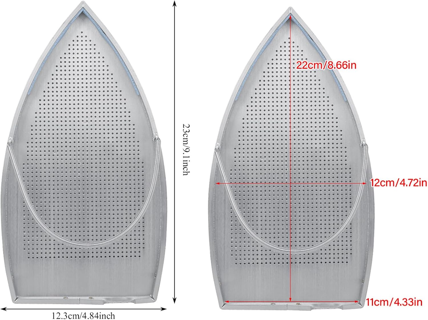 - 9.1 X 4.84 IN FITS MOST Types: This iron guard is 9.1 X 4.84 in,it designed with an ultra-smooth Cover, making it easy to use with most iron Types. It helps to distribute heat evenly, allowing you to iron faster and more efficiently. The versatile design fits most irons, ensuring it's a practical solution for all your ironing needs