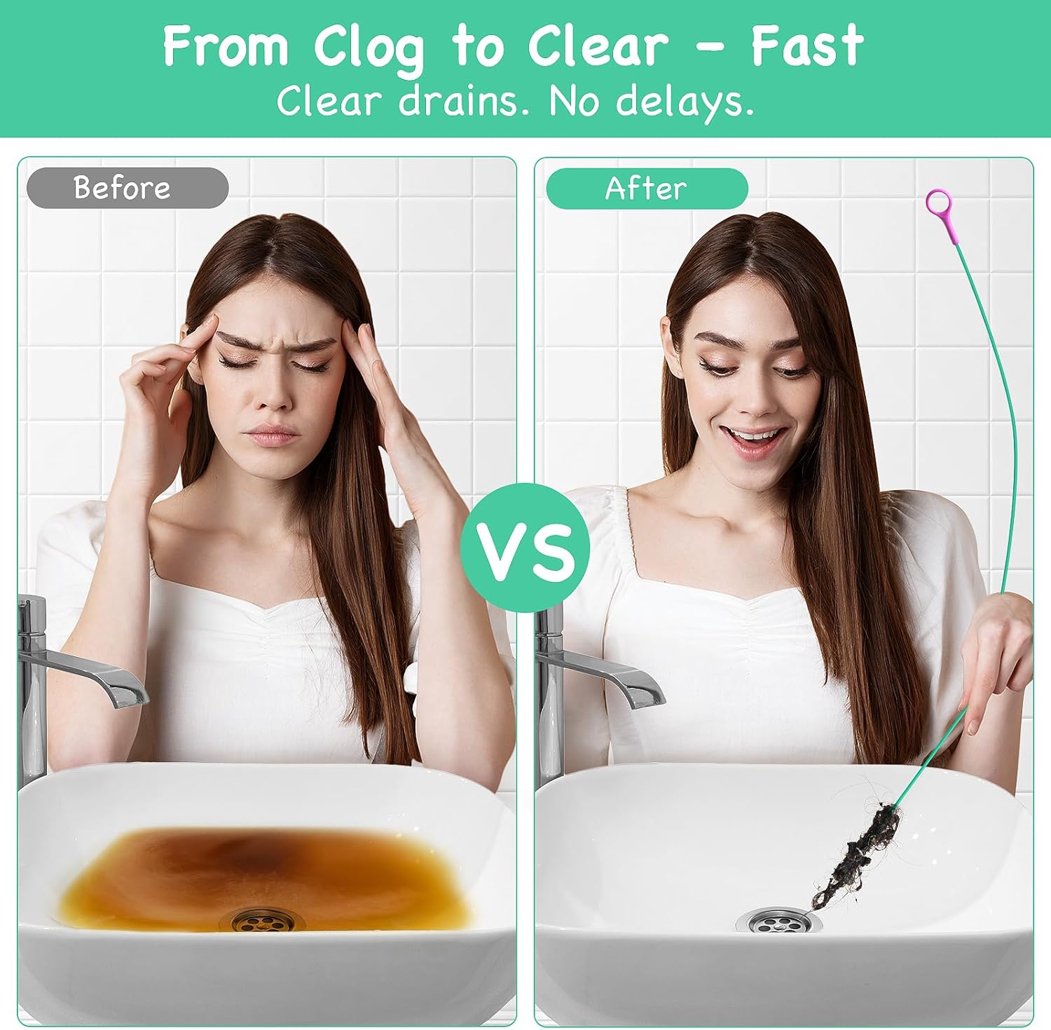 - 🔔 Warm Tip: ① This drain clog remover tool is designed for soft blockages such as hair, grease, and light debris. For harder or deeper obstructions (like solid objects or roots), professional plumbing service or a heavy-duty drain auger may be necessary. ②This is not a toy. Please keep this sink snake drain tool out of reach of children.