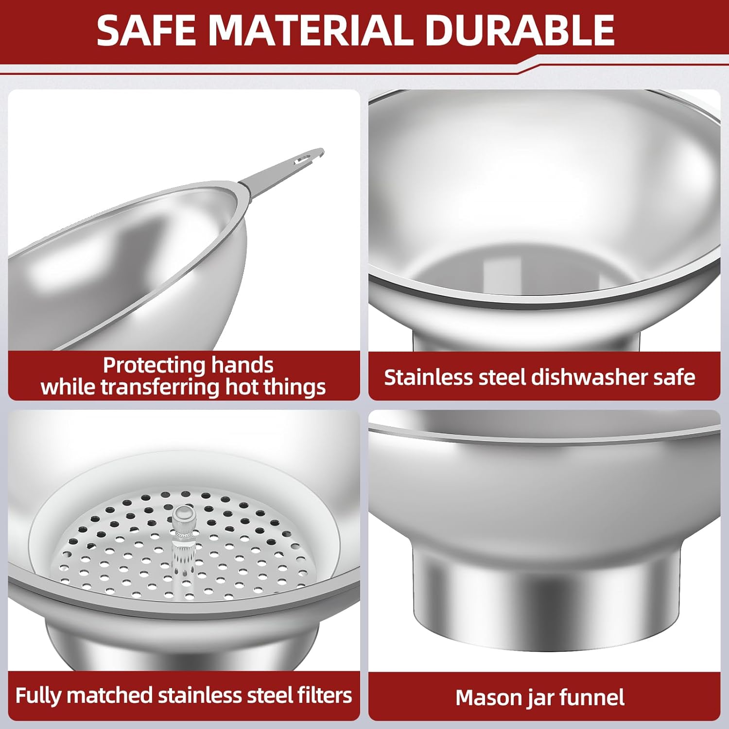- A Must-Have Kitchen Essential :Durable and easy to use, Whether you're preserving homemade jams, pouring broth, or transferring dry goods, it helps streamline your process and keep your counters clean.
