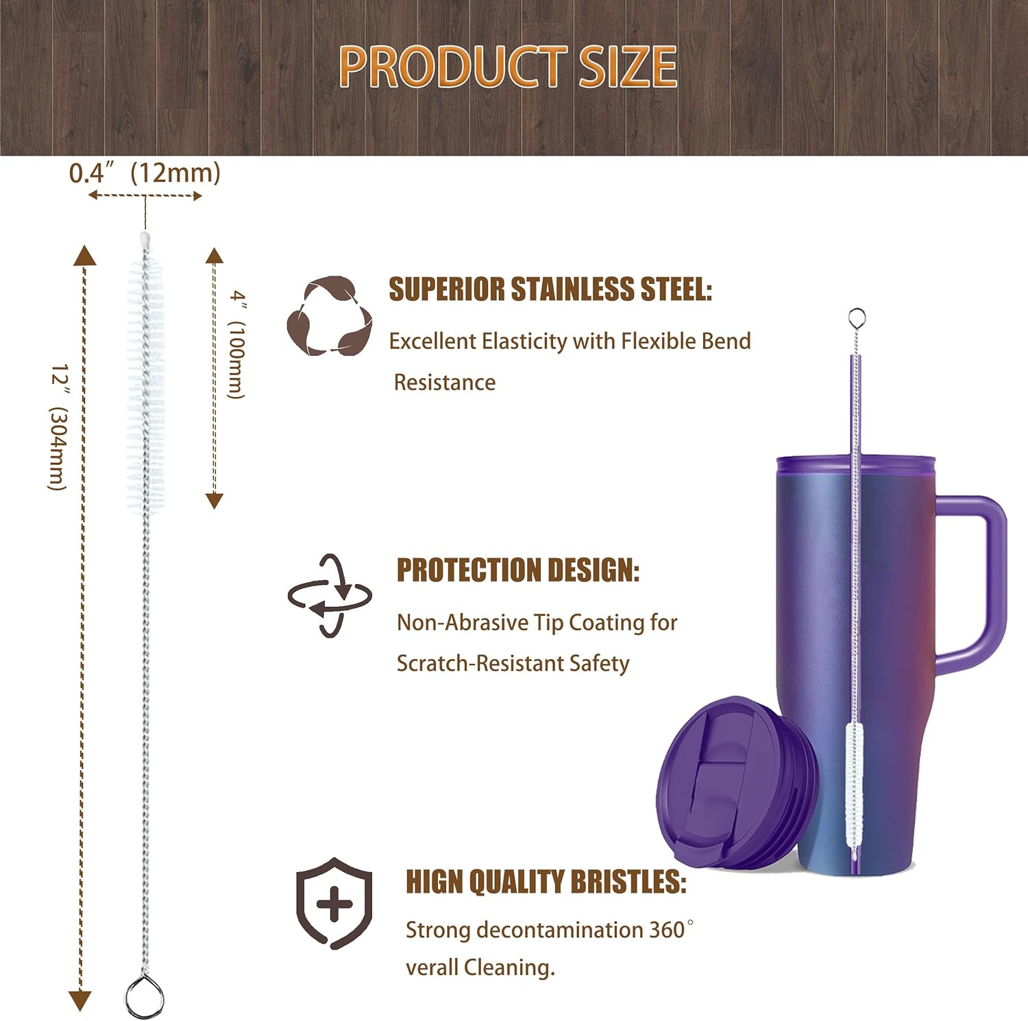 - 【Heat-Resistant & Shape-Restoring Design】 Engineered with a semi-flexible core, the Stanley straw cleaner brush bends to fit tumbler curves yet snaps back flawlessly—even after scrubbing metal straw cleaner-grade steel. The 304-grade handle and heat-resistant bristles (60°C-proof) outperform warping green pipe cleaners, making it ideal for sanitizing straw cleaner brush set kits or deep-cleaning tasks.