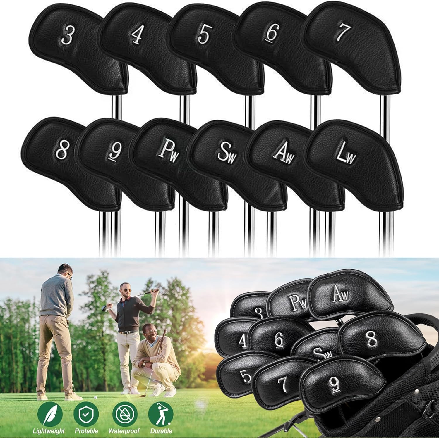 Golf Iron Head Covers (12-Pack) Synthetic Leather Waterproof Club Head Covers for Standard Irons – Magic Tape Closure, Universal Fit & Anti-Loss Design