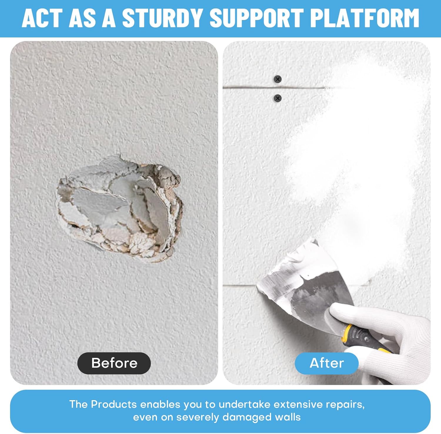 - 【Easy to Use】No professional skills required. Simply secure the repair clips around the damaged area, install new drywall pieces, and finish with joint compound. Significantly reduces DIY repair difficulty, perfect for homeowners to operate easily.