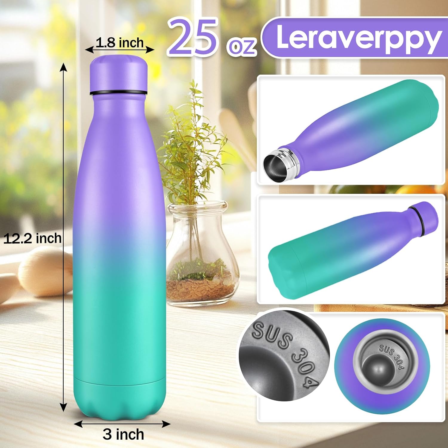 25oz Cola-Bottle Shaped Stainless Steel Leak-proof Water Bottle,Double Wall Vacuum Insulated Metal,Travel Mug For Sports Indoors & Outdoors,BPA-Free Kids Flasks,Purple Green(2 Pack)