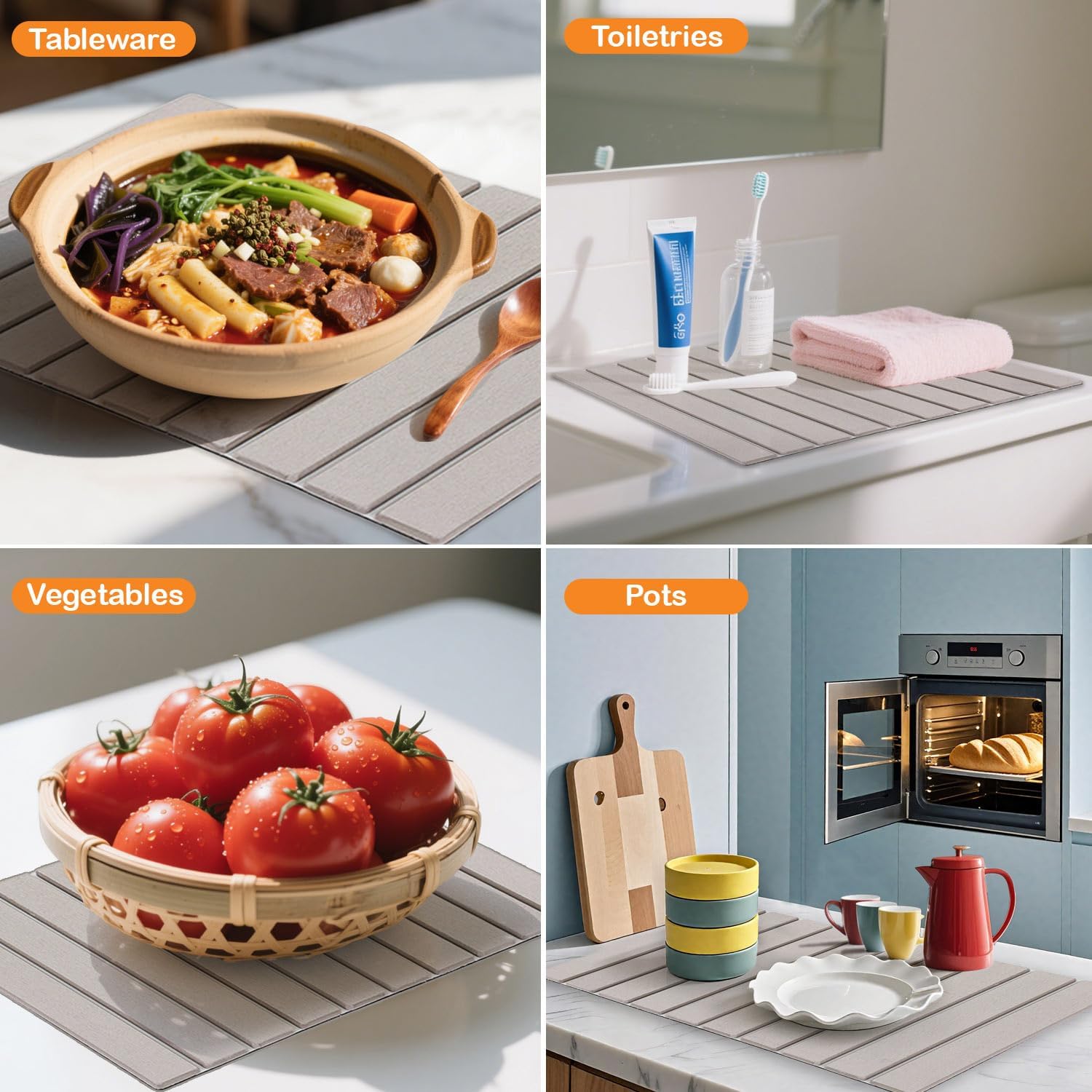 Foldable Stone Dish Drying Mat Fast Dry and Quickly Absorbed Collapsible Drying Mat, Protection Kitchen Counter,Kitchen Dishes Bottles Cups Match Any Countertop 23" x 16"