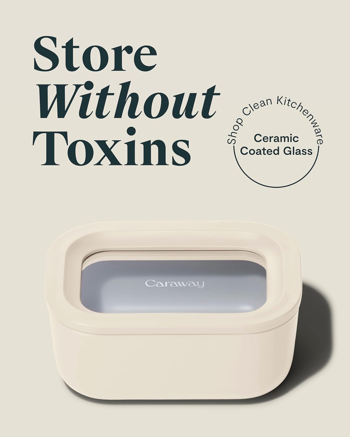 Caraway 2pc Glass Food Storage Set - 2.6 Cup Food Containers (2) - Non-Toxic Ceramic-Coated Glass - Air Release Technology - Compact & Stackable Design - Cream