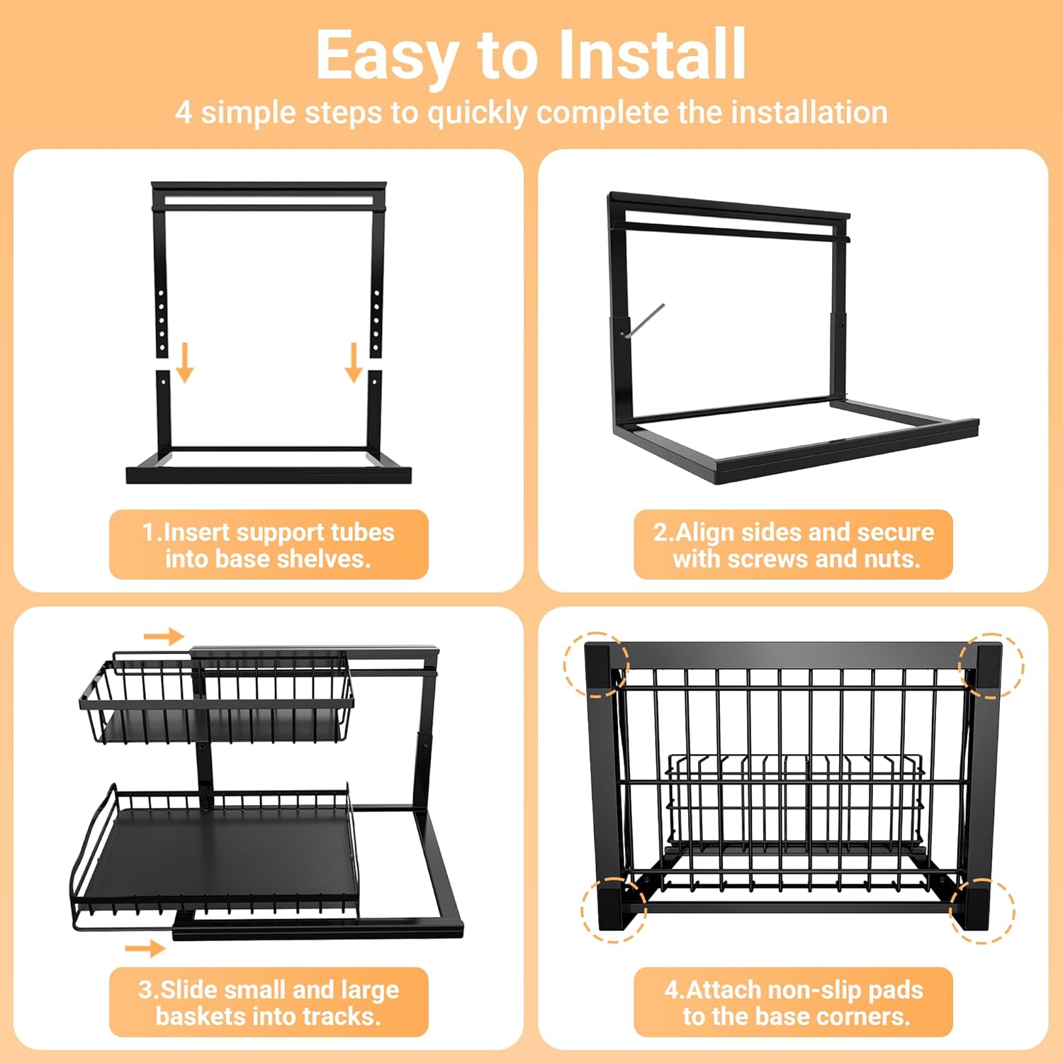 - Easy to Install & Clean: This under sink organizers and storage set comes with mostly pre-assembled parts for quick installation. Its open grid design promotes airflow, prevents water buildup, and keeps items dry and odor-free.