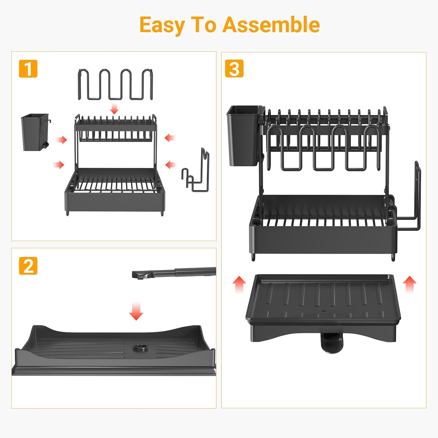 - Secure Locking System, Prevents Tipping Worried about stability? Our over sink dish drying rack has a unique lock mechanism. Simply engage the lock for a rock-solid top tier. This dish rack over sink ensures total safety, making it a worry-free dishes drying rack for daily use.