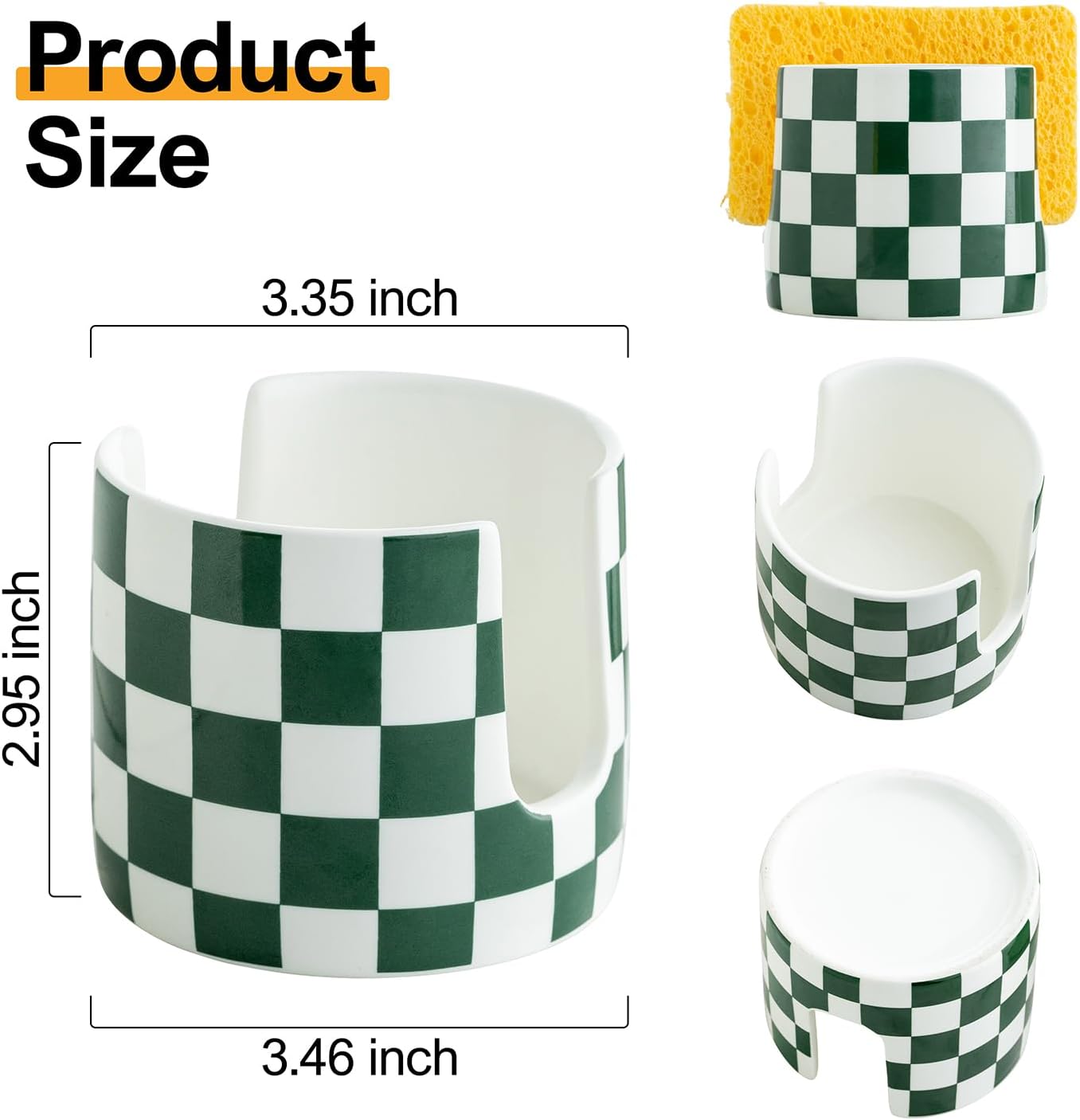 - Sleek Checkered Design: The bold checkerboard pattern gives a contemporary flair to your kitchen, effortlessly elevating the style of your countertop while keeping your sponge neatly stored