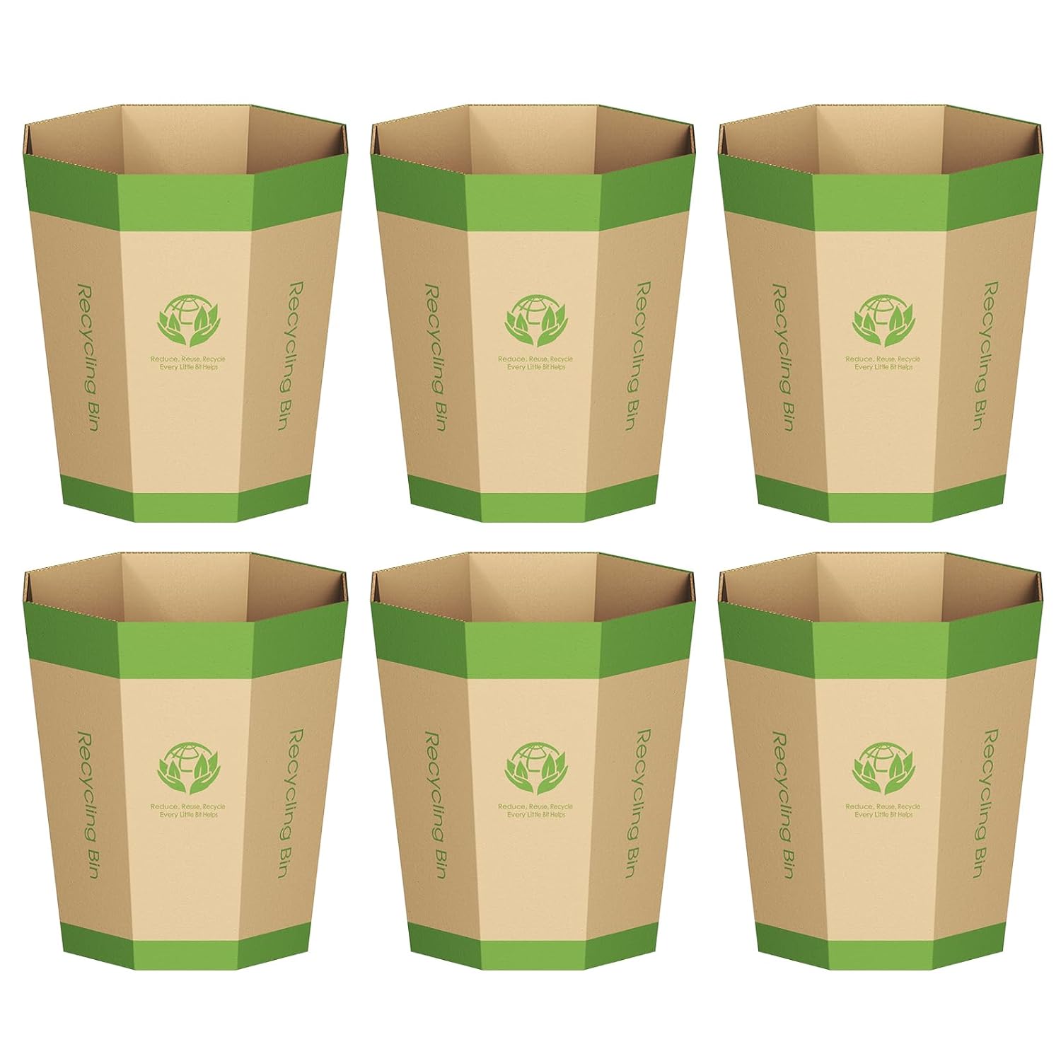 6-Pack Cardboard Trash Can – Foldable, Recyclable, Plastic-Free & Reusable Small Waste Paper Basket - Garbage Bin Perfect for Office, Bedrooms, Home, Events & Outdoor Activities (1.6 Gallon)