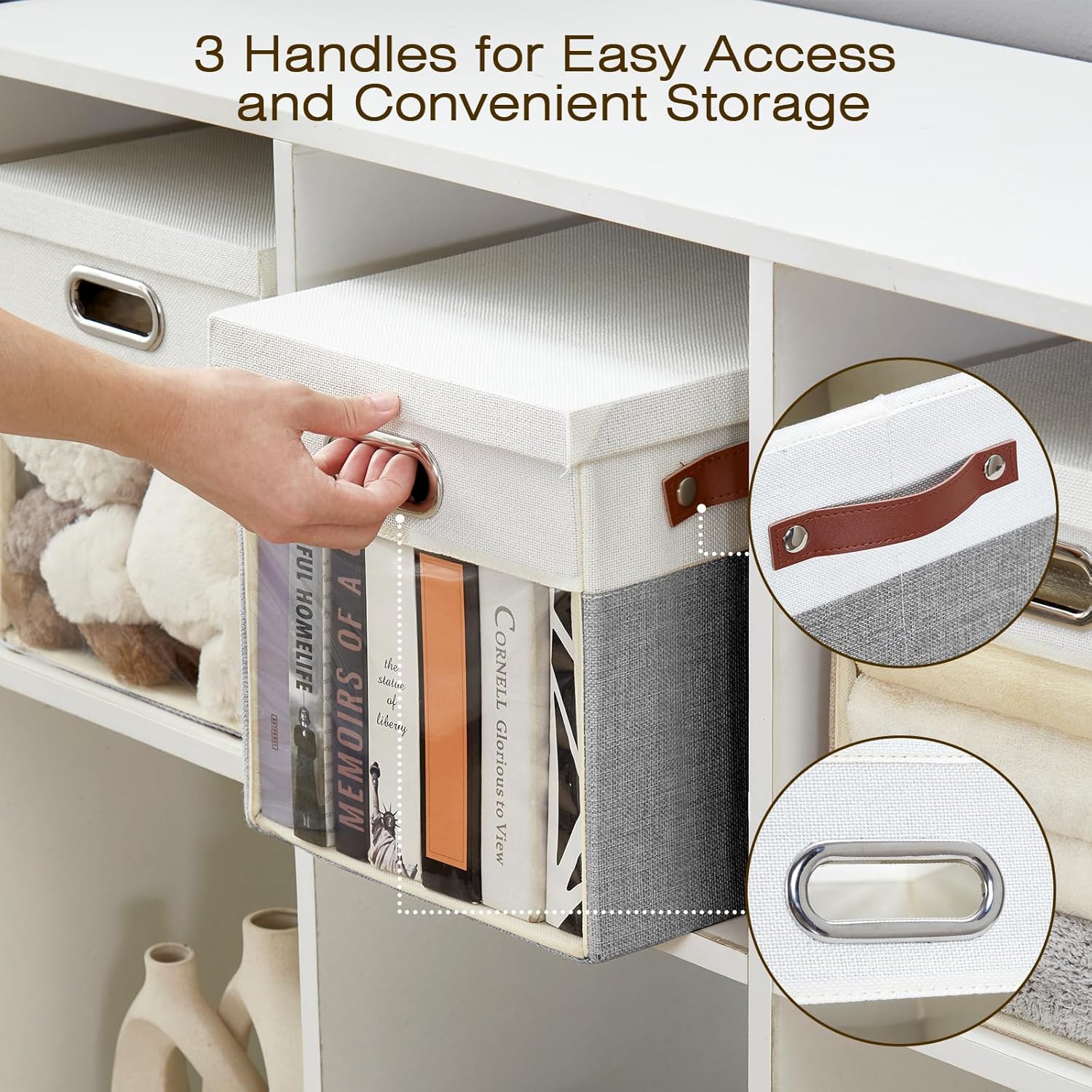 - Excellent Quality: Clear window cube storage organizer is made of high quality linen, soft, breathable and odorless. In addition the storage cube is paired with reinforced thick cardboard, not easy to tear and deform, durable, for your long-term storage needs. The storage basket with lid protects against dust, keeping your items neat and clean.