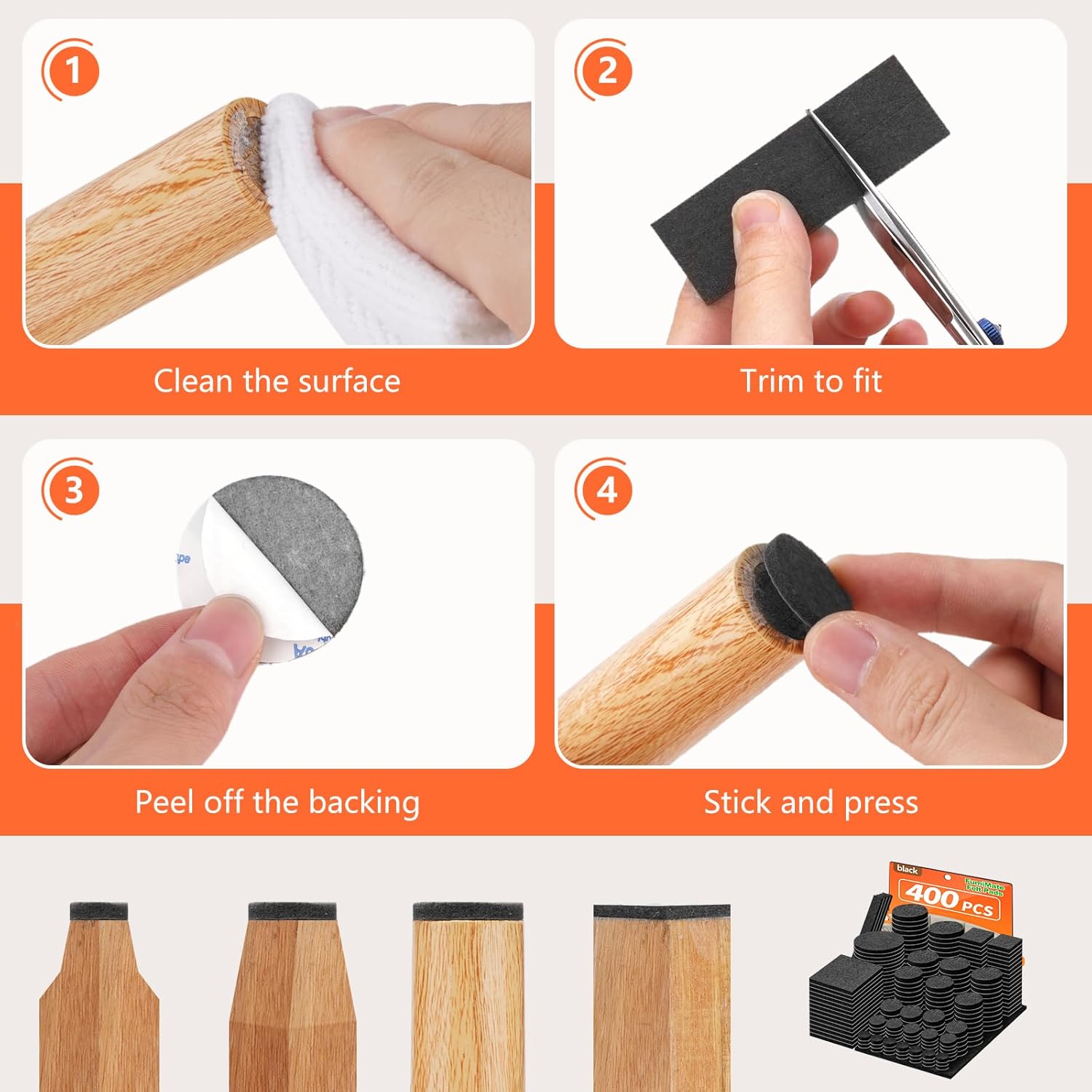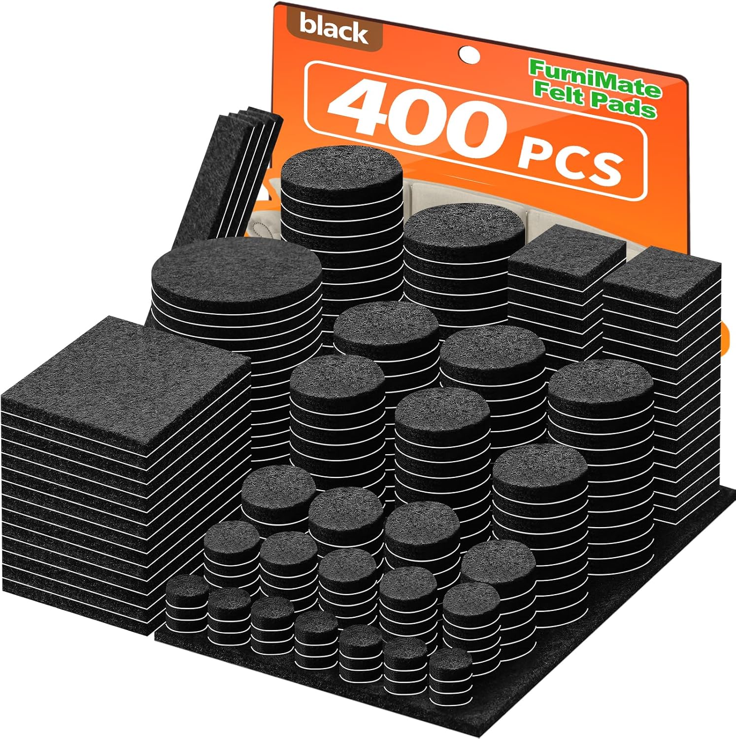 Felt Furniture Pads 400 Pieces, Furniture Pads for Hardwood Floors, Floor Protectors for Furniture Legs, Felt Pads for Furniture, Many Large Sizes Black