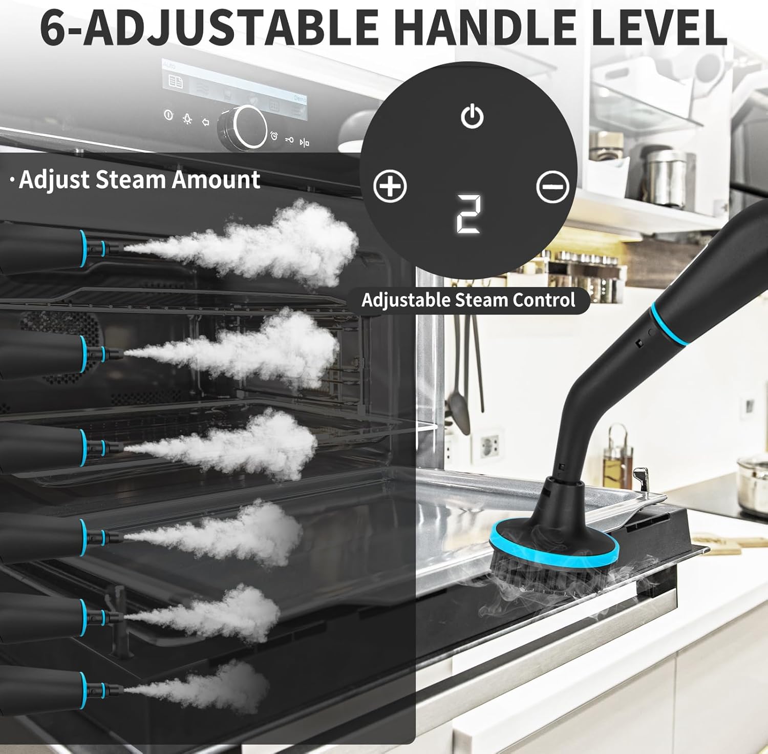 - ใ๐-๐๐๐ฆ๐ฉ๐๐ซ๐๐ญ๐ฎ๐ซ๐ ๐๐๐ฃ๐ฎ๐ฌ๐ญ๐ฆ๐๐ง๐ญใ:Our steam cleaner have 6 levels of adjustment that can be adjusted to your specific cleaning needs, humidity with the "+" or "-" buttons and can handle a wide range of cleaning tasks. Itโs all-purpose and can go and clean out any hard to reach gaps, corners, angles, and also various surfaces.