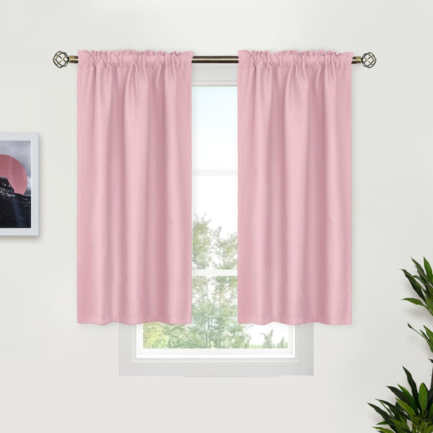 BGment Baby Pink Room Darkening Curtains 45 Inches Long for Short Window - Small Thermal Insulated with Rod Pocket Privacy for Cafe Kithchen Bathroom Girl Bedroom, 34 x 45 Inch, 2 Panels