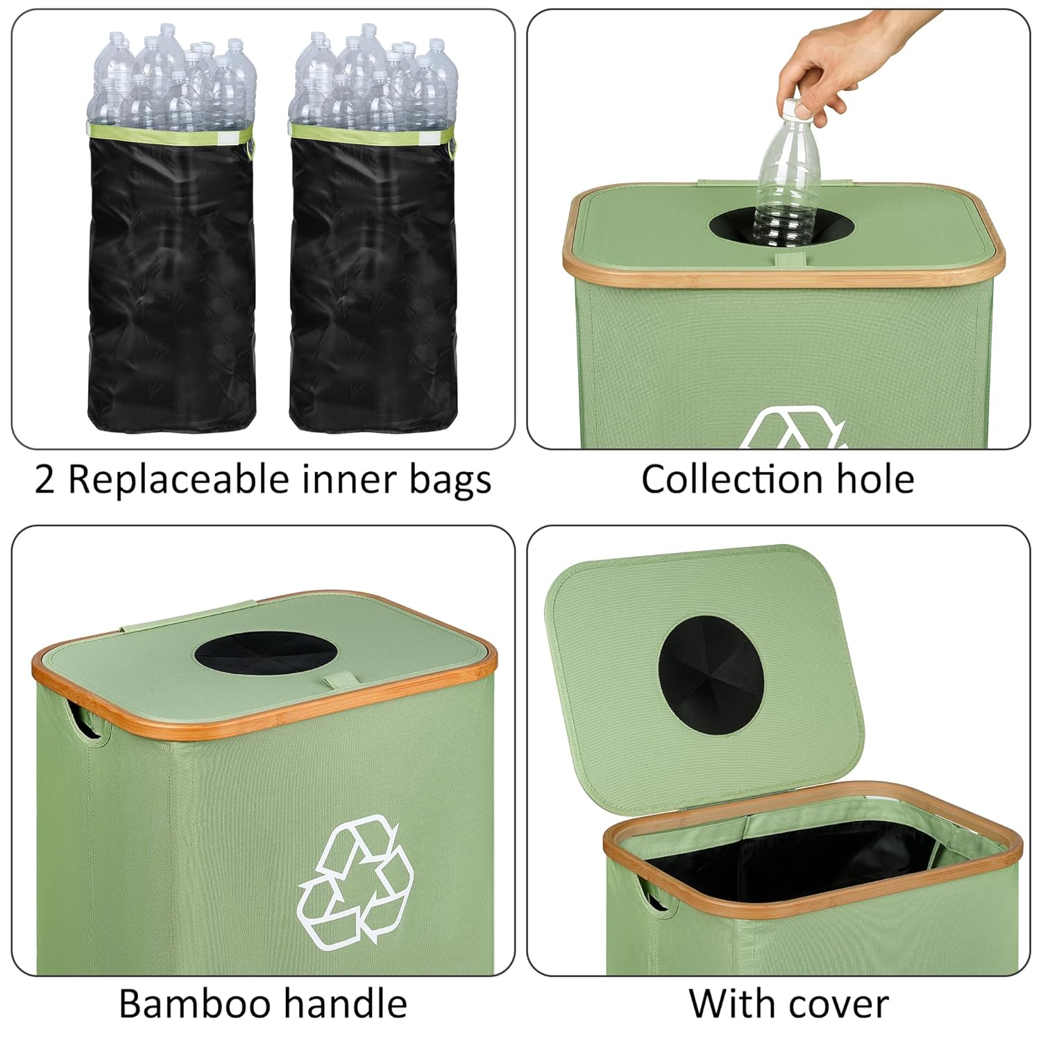 29 Gallons Recycling Bins for Kitchen, Indoor Recycle Bins with Lid, 110L Large Recycle bin with 2 Removeable Reusable Inner Bags, for Bottles Cans Glass Plastice Cartons(Green)