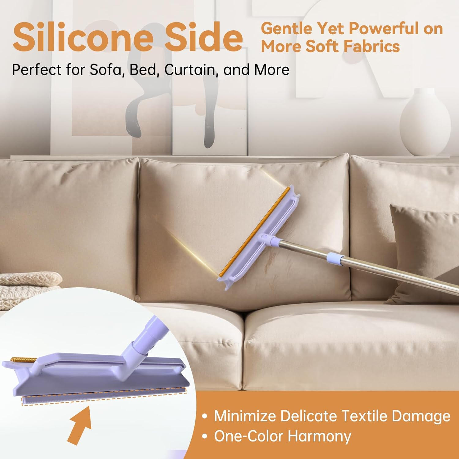- 【MULTI-SCENE HAIR REMOVAL 】: This versatile pet hair removal broom works effectively on carpets, rugs, pet beds, sofas, curtains, car mats, and cat trees. Removes embedded hair vacuums can’t reach and gathers fur into neat piles for quick disposal. Pro Tip: For best results, use the silicone side on soft fabrics and metal side on carpets. Avoid leather, tile, or wood surfaces.