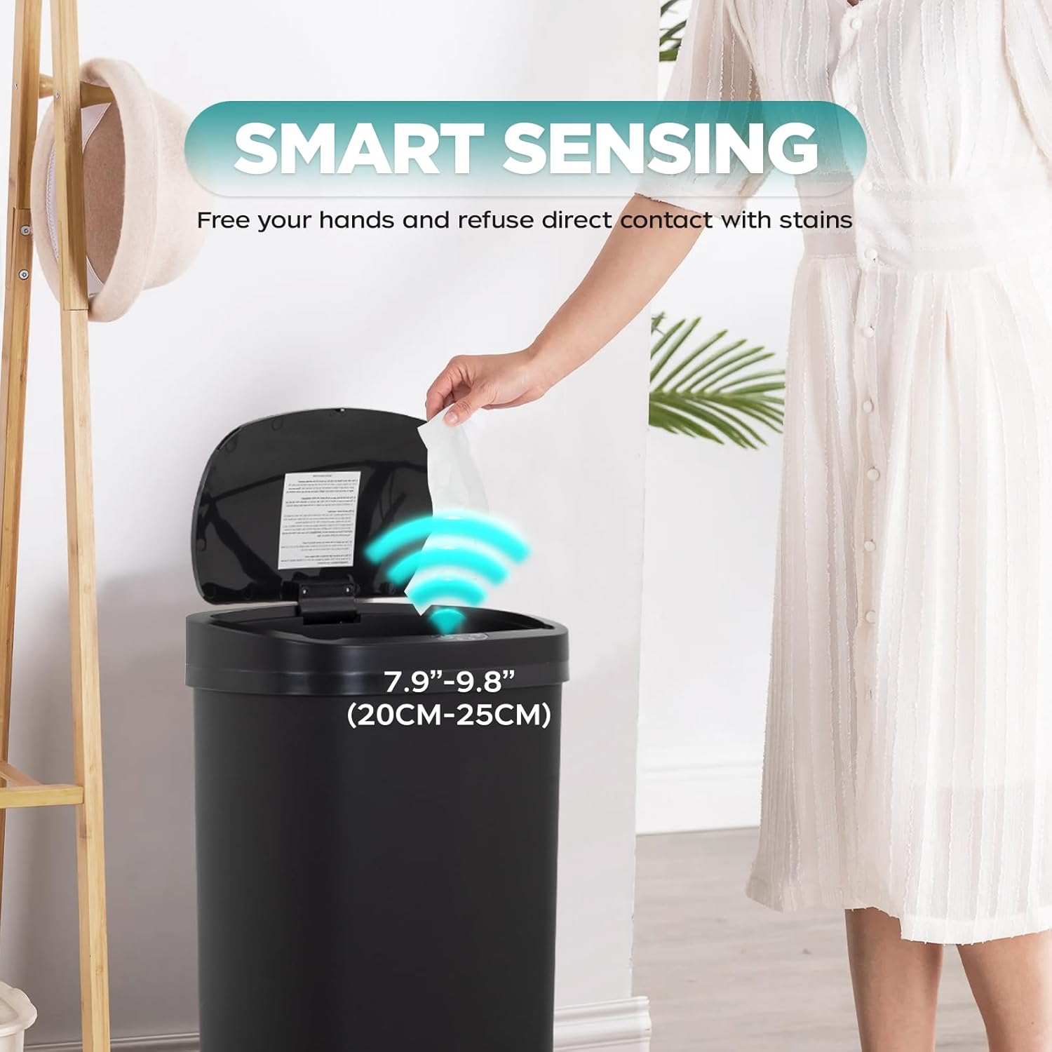 Automatic Motion Sensor Bathroom Trash Can with Lid, 13 Gallon Touchless Trash Bin, Smart Dog Proof Garbage Can, Touch Free Waste Basket for Toilet, Office, Bedroom,Black
