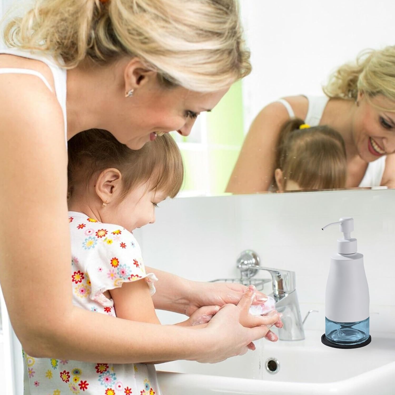 - BEST PARTNER: 1 Refillable hand soad dispenser, 1 Non-Slip Coaster, 6 Waterproof label stickers. The anti-skid pad can increase the friction at the bottom of the dispenser bottle. Max Capacity: 11oz / 320ml