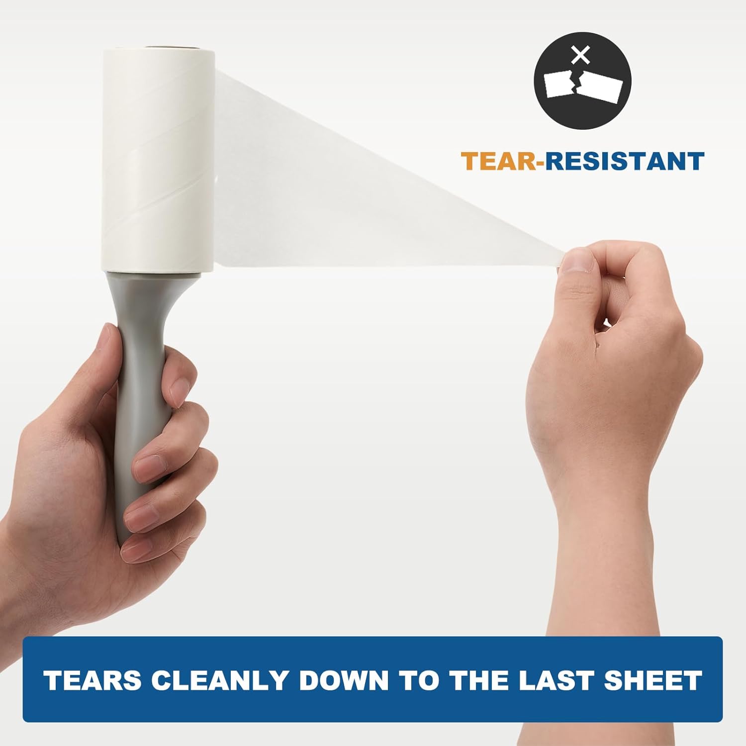 - 【EXTRA STICKY TAPE FOR PET HAIR REMOVER】: The most effective household daily cleaning tool! It offers 200% more pick-up per strong adhesive sheet for a quick and effective way to remove annoying pet hair, lint, and debris. You will save time in removing stubborn hair and fuzzy bits from your clothes, bed, carpet, car, furniture.