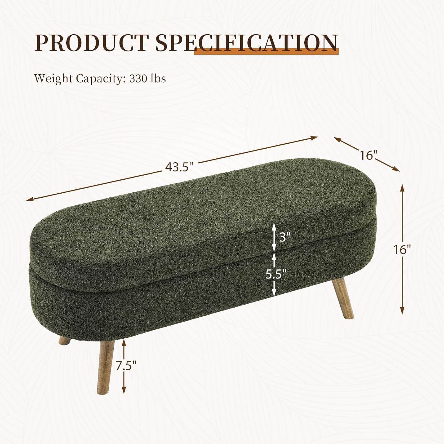 Furnimart 43.5" Queen Size Storage Bedroom Bench for End of Bed, Faux Linen Upholstered Storage Ottoman with Solid Wood Leg for Bedroom,Living Room, Entryway, Beige