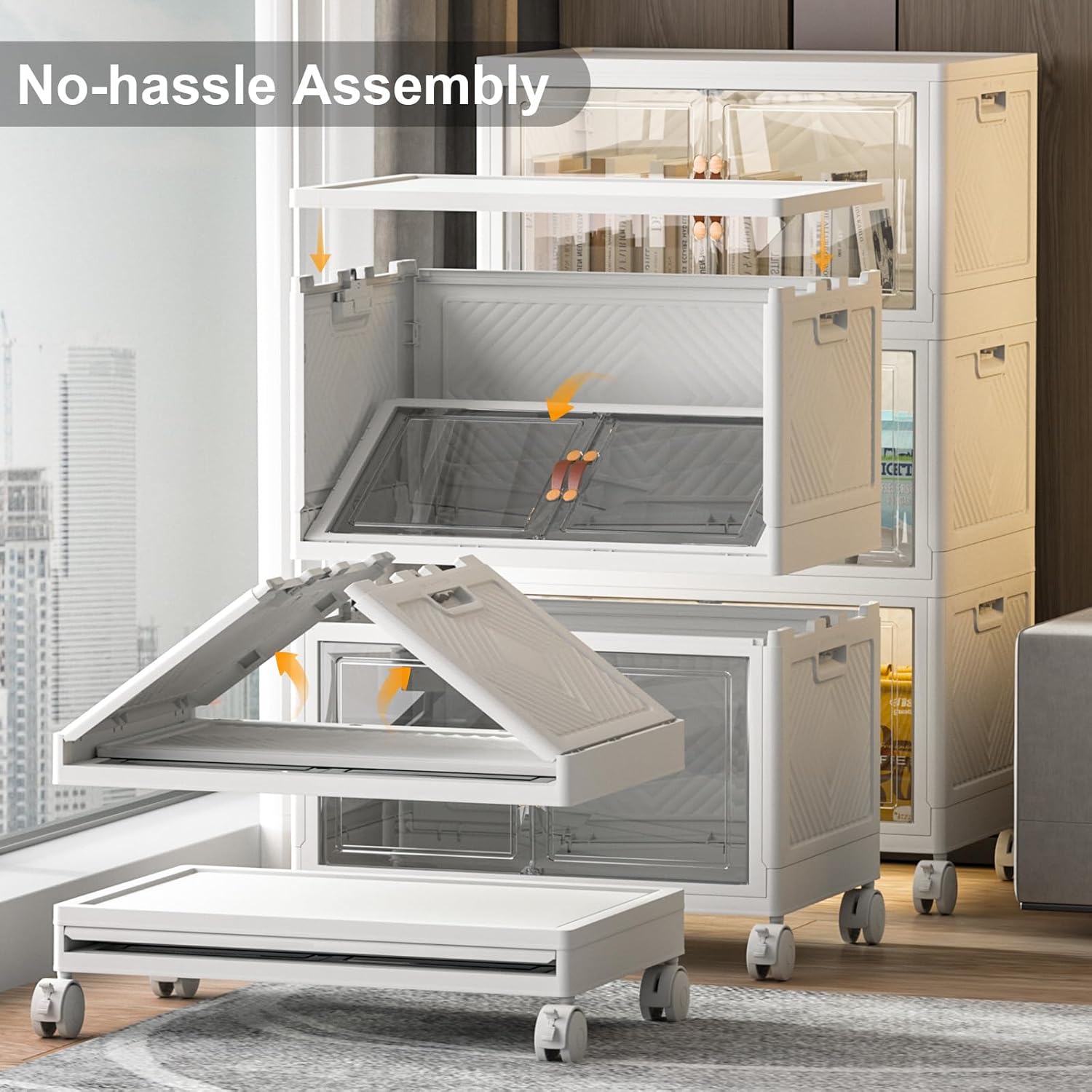 - 【Smooth Mobility with Locking Wheels】: Easily move your storage wherever you need it. These stackable storage bins with wheels feature four smooth-rolling casters, including two locking brakes, keeping your bins stable yet mobile — great for bedrooms, dorms, or offices.
