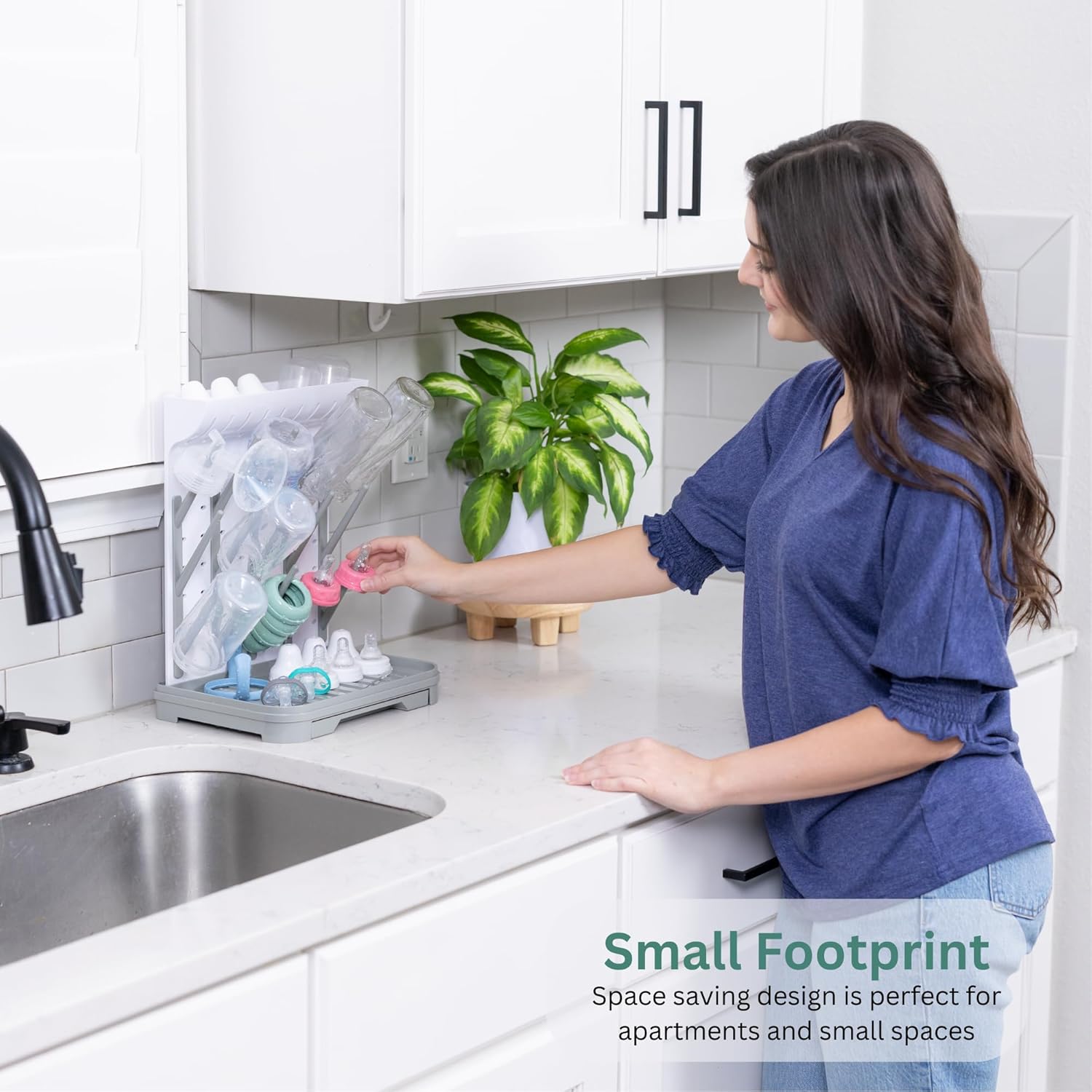 - ✅ Vertical Space-Saving Design – The tall, upright structure of this baby bottle drying rack saves valuable counter space while allowing maximum airflow for faster drying.