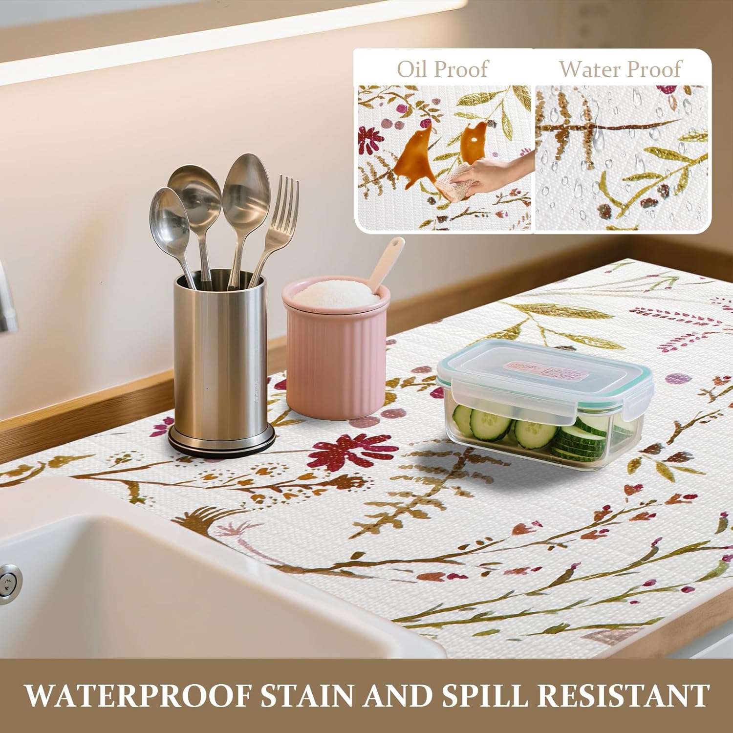 - 【EASY TO CLEAN, OIL-RESISTANT】Our waterproof vinyl barrier repels spills and grease. Messes wipe away instantly with a damp cloth—no seepage or stains. Saves time and keeps surfaces pristine
