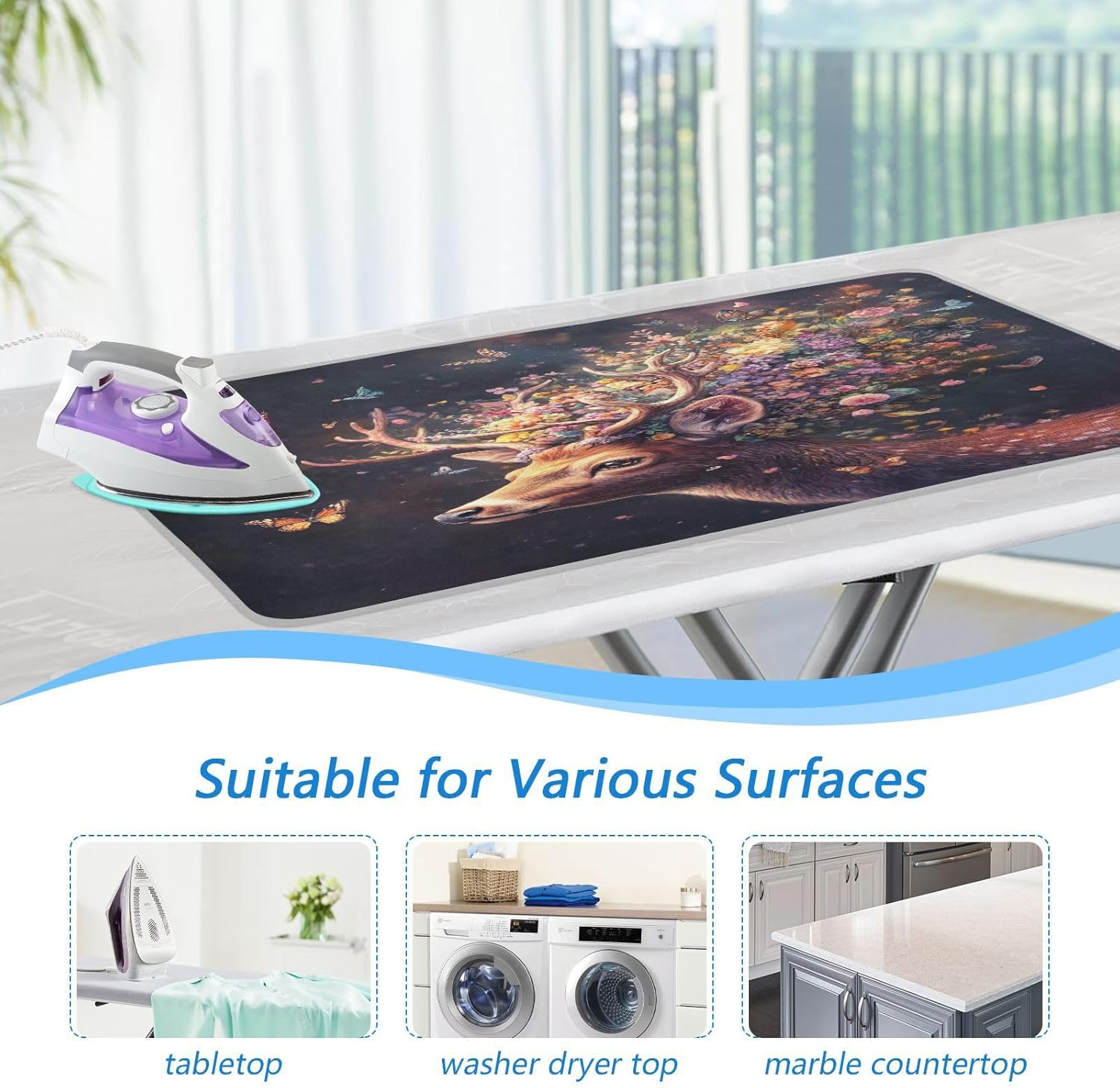 Deer with Butterfly Floral Ironing Mat Thickened Ironing Blanket Travel Portable Double-Side Using Ironing Pad Travel Isolate Heat Pad Cover for Washer Dryer Table Top Countertop 27.6x47.2in
