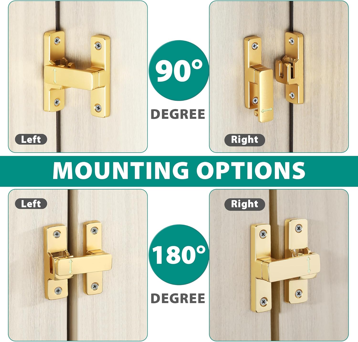 - UPGRADED GATE LATCH: This door lock can be mounted at 180 degree, also can be mounted at 90° right angles, providing space-saving functionality.